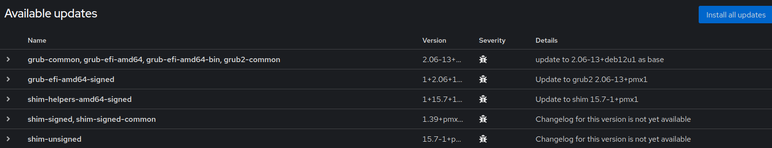 Holen:5 http://download.proxmox.com/debian/pbs bookworm/pbs-no-subscription amd64 grub-efi-amd64-signed amd64 1+2.06+13+pmx1 [1.260 kB]
