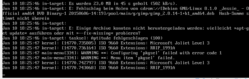 Leider schlägt die Installation fehl, wenn der Punkt: "Software auswählen und installieren" erreicht ist.