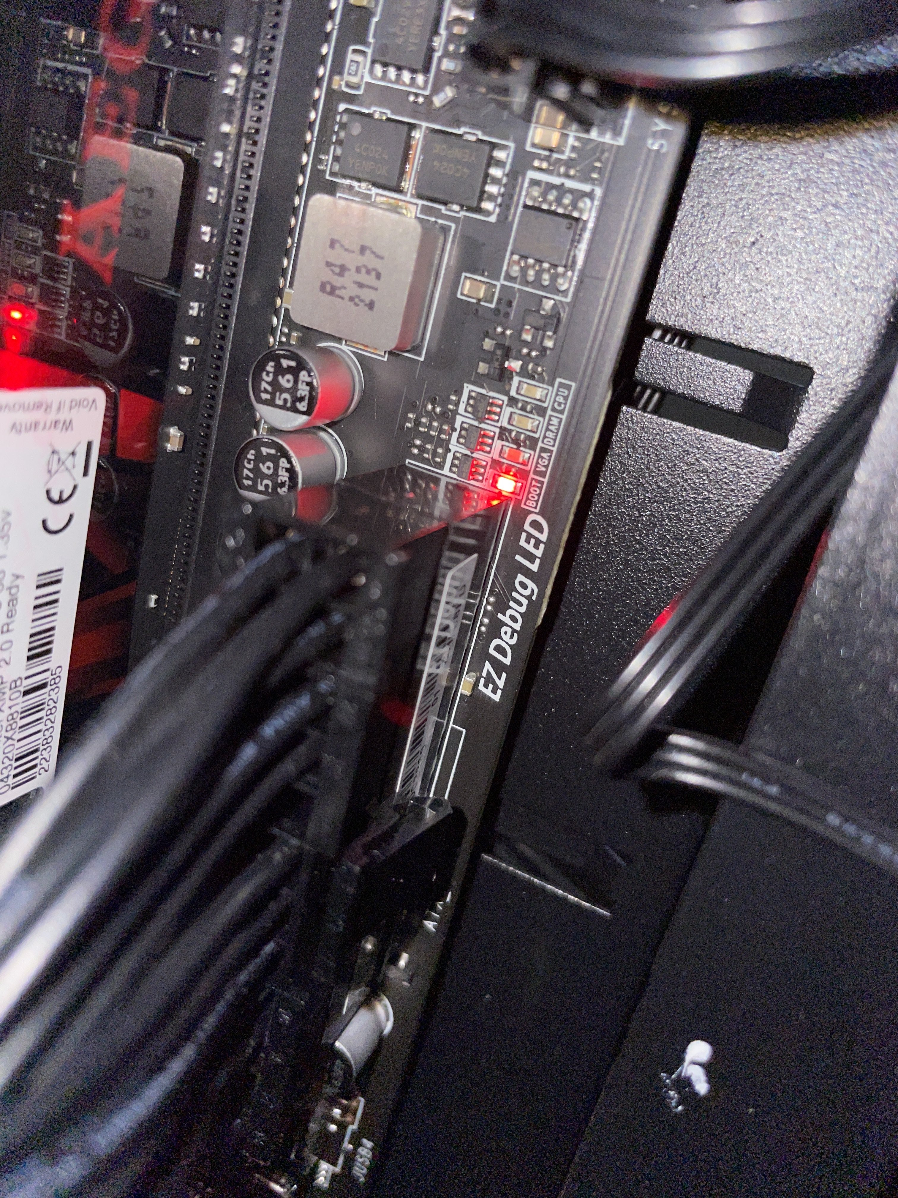 Aber Grafikkarte Lüfter drehen sich. Auch leuchtet Debug LED nur 1-2 Sekunden bei VGA und dann leuchtet dauerhaft Boot.