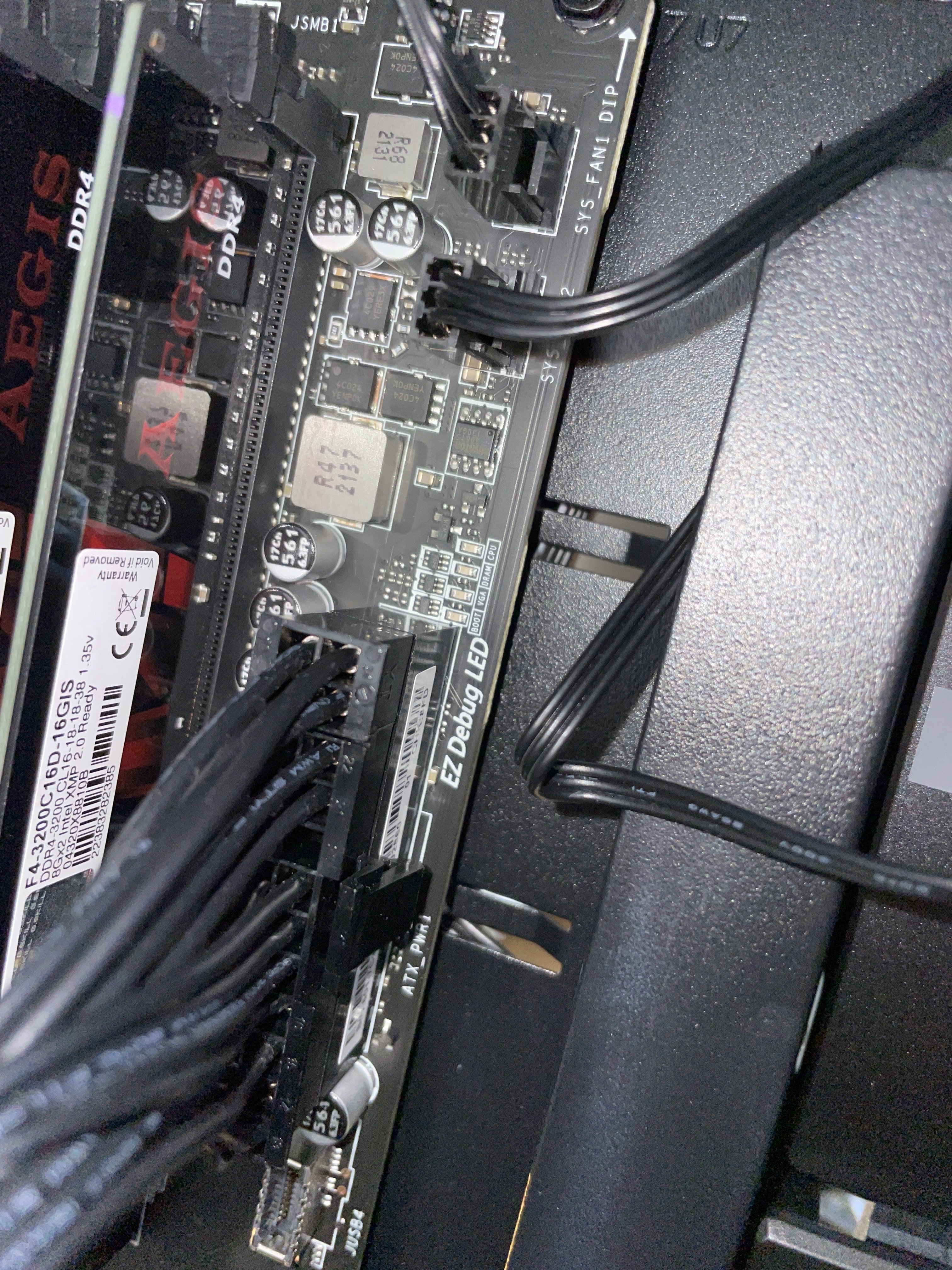 Ich habe den Rechner zusammengebaut ohne größere Mühe. Allerdings leuchten die Debug LED‘s am Maimboard. Dadurch habe ich kein Signal am Monitor und der Bildschirm bleibt schwarz.