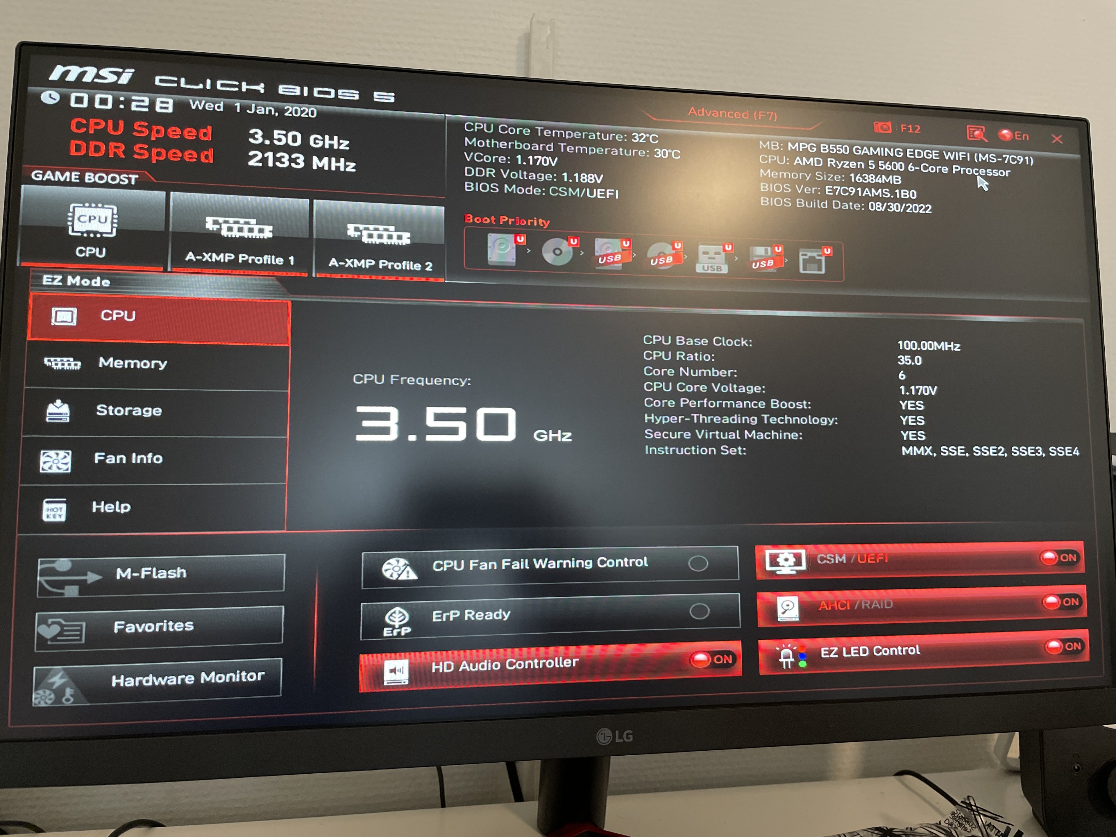 Mainboard: MSI MPG B550 Gaming Edge Wifi