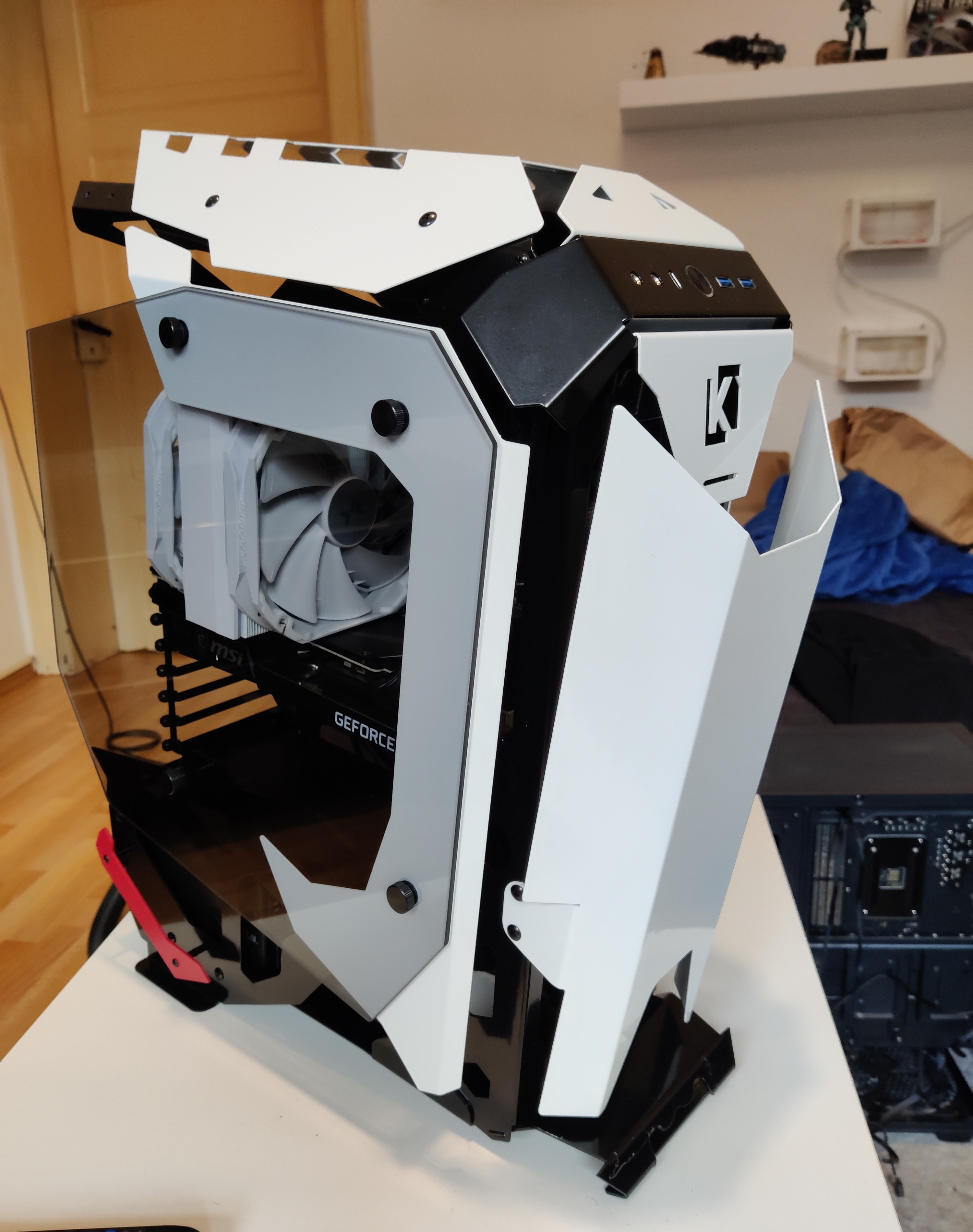 Ich wusste einfach das die günstigen Gehäuse oft nicht richtig ausgemessen sind. Da sind noch mindestens 4mm übrig. Dafür berührt der Lüfter die Grafikkarten Backplate. 😯