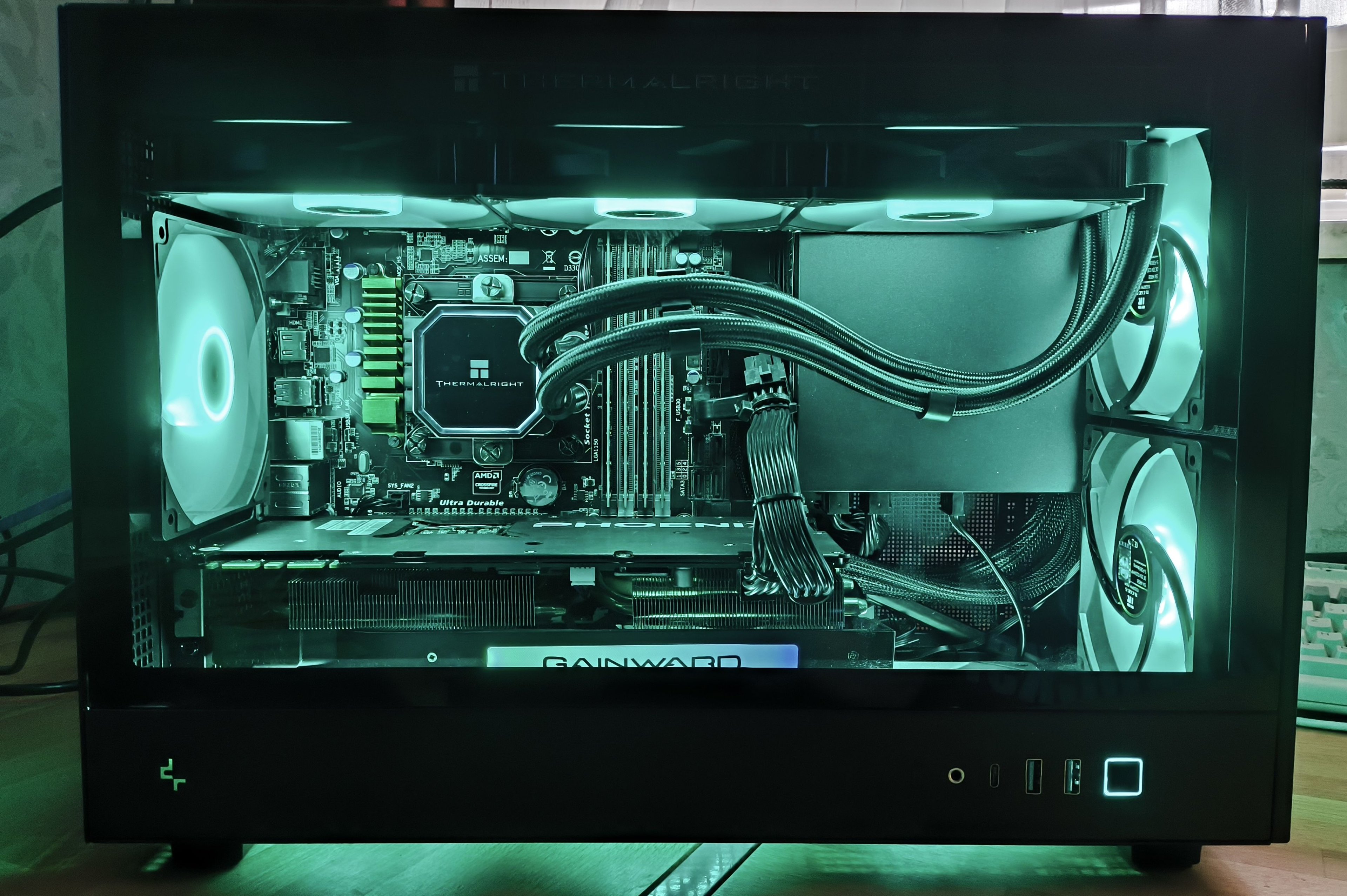 Für mich war übrigens ausschlaggebend, dass das Gehäuse nicht höher als 32 cm ist, und dass es eine 360er AIO aufnehmen kann. Die Verarbeitungqualität empfinde ich als sehr gut, auch wenn es nicht das dickste Blech ist, das mir bis jetzt untergekommen ist. Die Montage ist sehr durchdacht und praktisch. Toll, dass bereits Mesh als Staubfilter ab Werk eingelegt ist. Was ich aber gar nicht verstehe: Wieso hat der Hersteller am Boden keine Lüfter vorgesehen? Die passen doch tadellos, sogar der Lochabstand im Bodenblech passt.