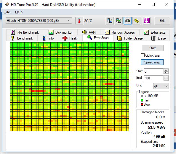 : 88GB (NTFS, 4kB) @ HGST Hitachi HTS545050A7E380 (500.1GB, SATA300, 2.5", 5400rpm, 8MB Cache)