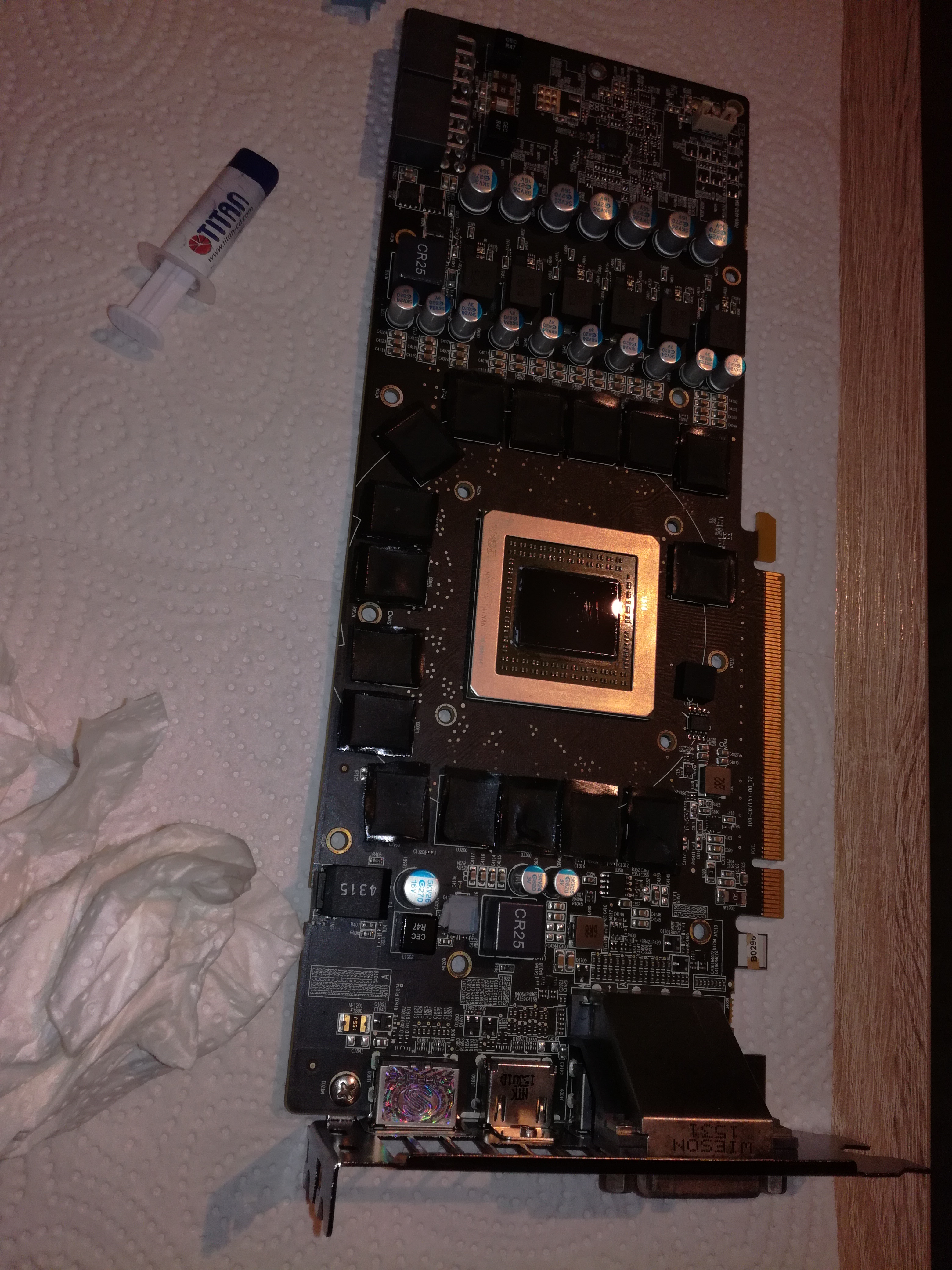 Zuvor hatte ich bei der Grafikkarte den Kühlkörper samt Lüfter demontiert und die WLP entfernt.