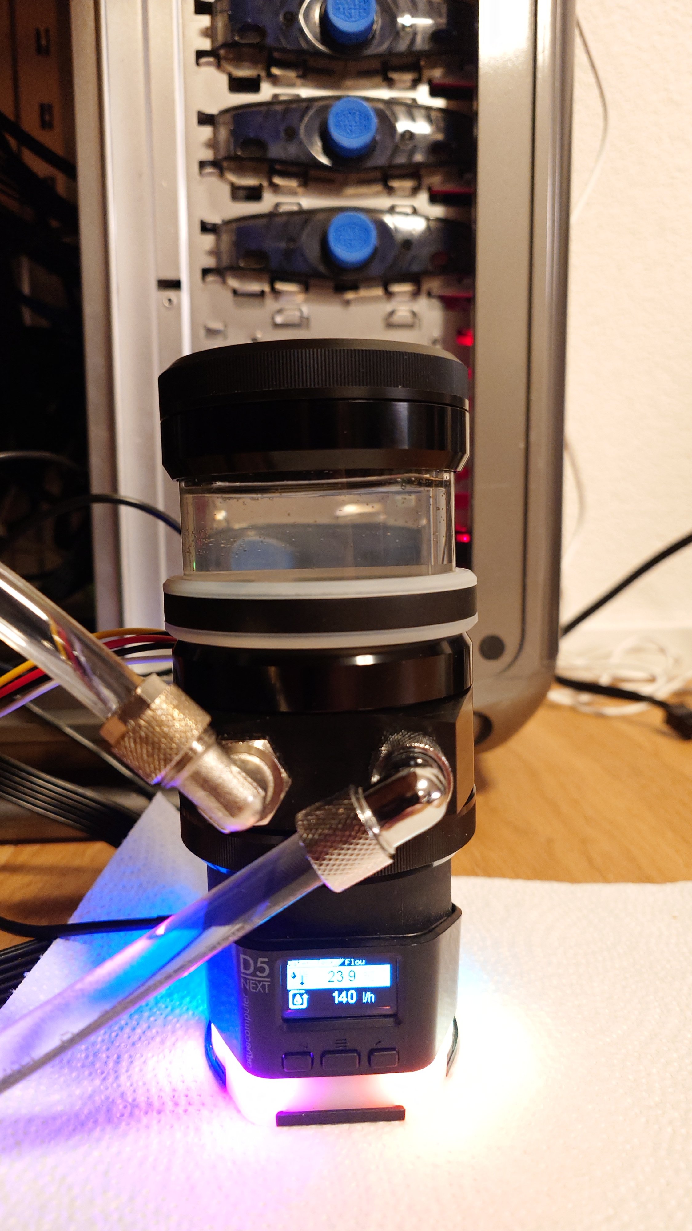 System: Aquastream XT Ultra -> GPU (5090) -> CPU (7950x3D Eisblock) -> 1080er Radi (phobya) -> Durchfluss sensor (Aquacomputer high flow 2)