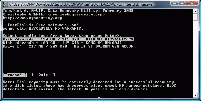 Versuche es unter Knoppix.