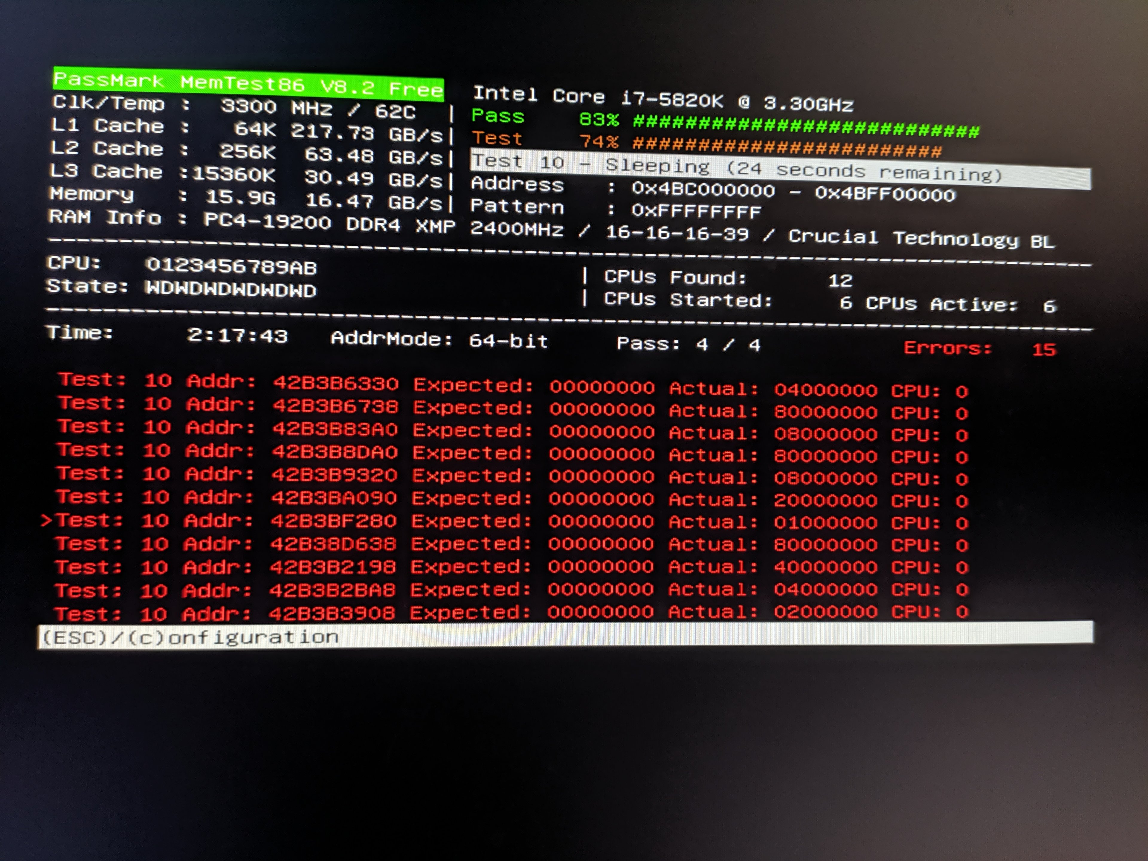 Ja sieht nicht gut aus. Irgendwas stimmt auf jeden fall mit dem RAM nicht. Du kannst nochmal versuchen den RAM auf 1,35V laufen zu lassen. Es kann bei ner Mainstreamplattform immer Probleme mit Vollbestückung geben, aber wenn vorher alles ging wohl unwahrscheinlich.