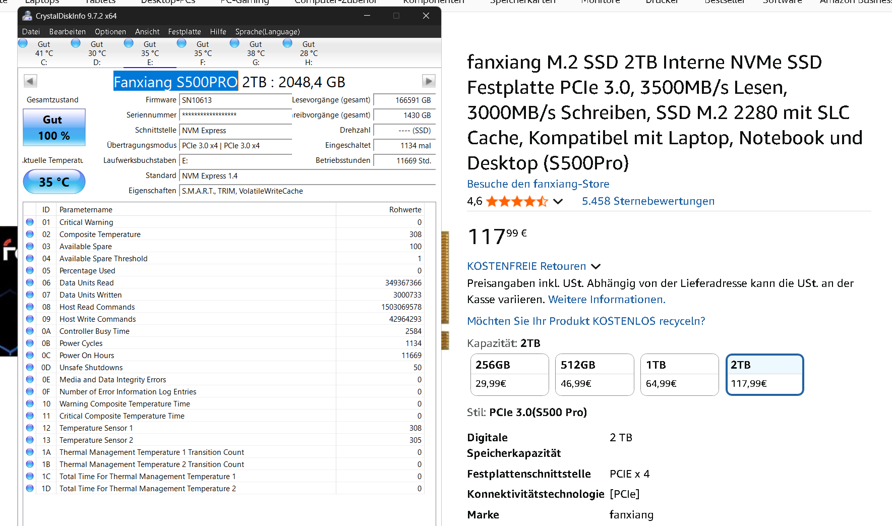 Als günstige 2 TB M.2 NVMe habe ich mir diese als Gaming Festplatte zugelegt und die hat schon ein paar Stunden auf dem Puckel: