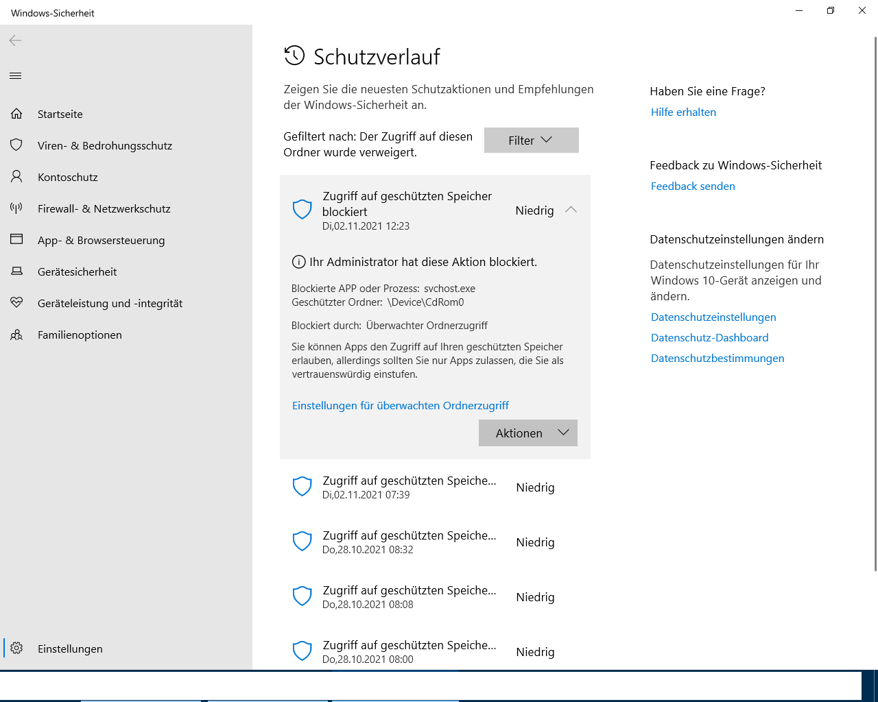Erst nach dem Update letzte Woche auf die Version (Win 10 Home) 19043.1320 hab ich im Schutzverlauf regelmäßig eine blockierte Aktion der svchost.exe (siehe Photo) stehen.