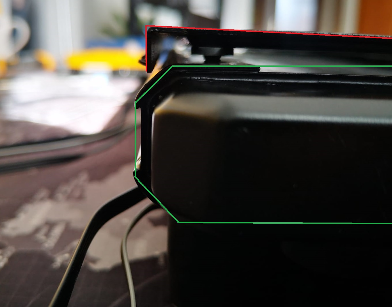Der L-Rahmen (rot) kollidiert mit dem Radiator (grün)
