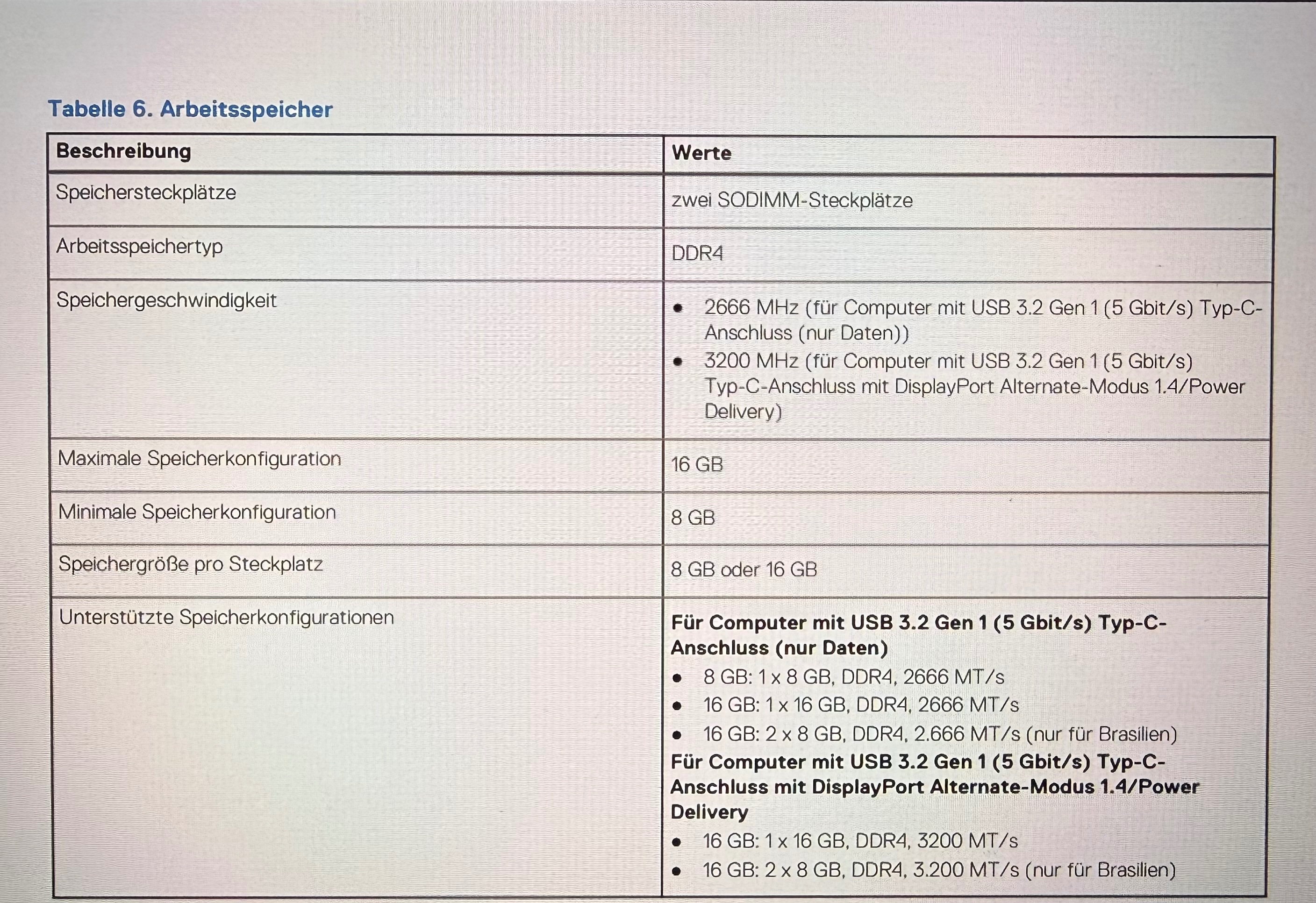 Wenn ich jedoch im Handbuch auf der Dell-Seite nachschaue, steht dort, dass 2×8 GB zwar unterstützt wird, allerdings nur in Brasilien??