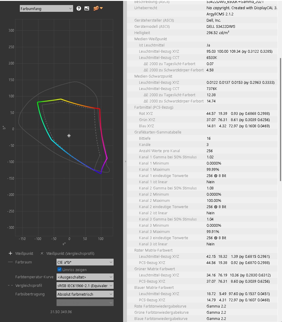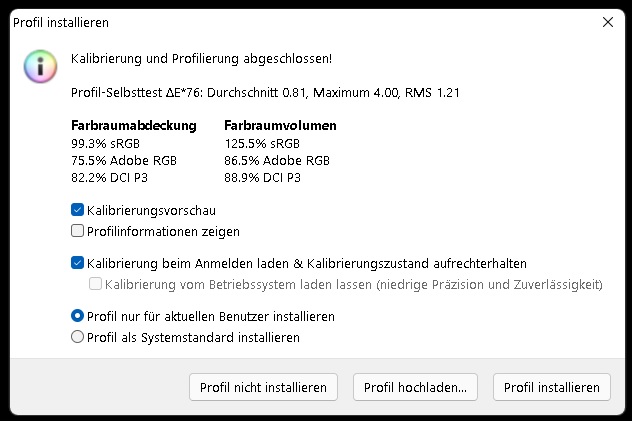 einstellung hab ich 6500K und Gamma 2.2 gewählt.
