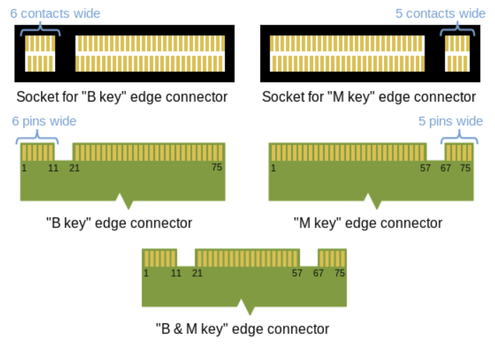 D.h. "normale" M-Key NVME SSDs passen schon mechanisch nicht.Basically, the 2242 PCIe NVMe M.2 2242 drive needs to have a physical B-slot and M-Slot.