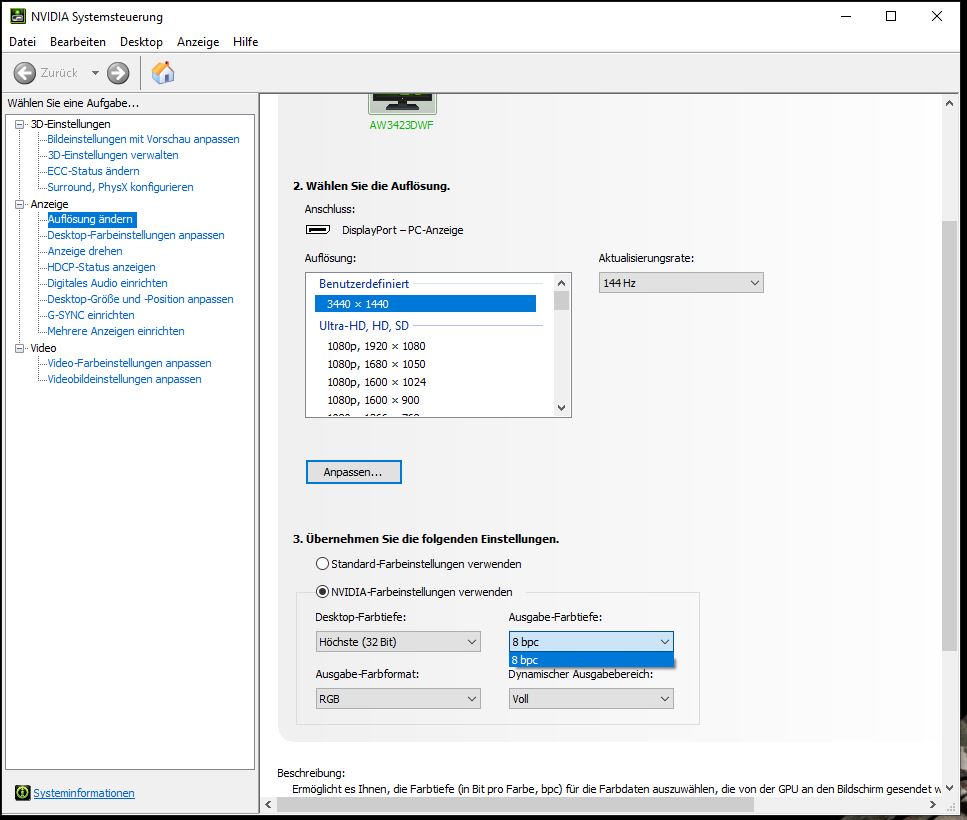 Wieso kann ich keine 144 hz + 10 pbc mehr einstellen? :-(