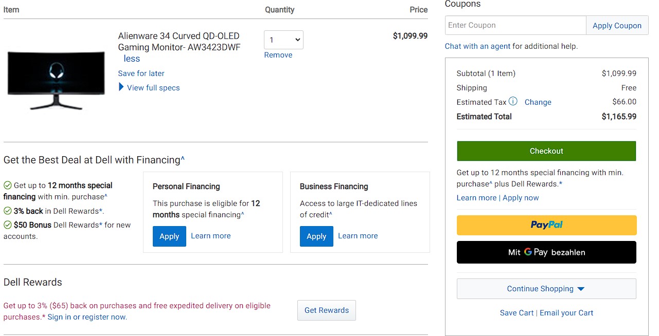 Evtl. war es in China nur die erste kleine DWF Charge, der DW hat sich auch auf das neue Jahr geschoben, ich gehe davon aus das das nichts mehr wird im 2022onetwoxx schrieb:Ich weiß nicht woher das immer mit China kommt, dass er da lieferbar ist. Du kannst ihn auf Dell CN bestellen aber lieferbar ist er dort auch nicht. Du kannst ihn dort in den Warenkorb legen zur Kasse gehen, deine Angaben machen und dann steht da übersetzt über das Lieferdatum wird man per Email infomiert