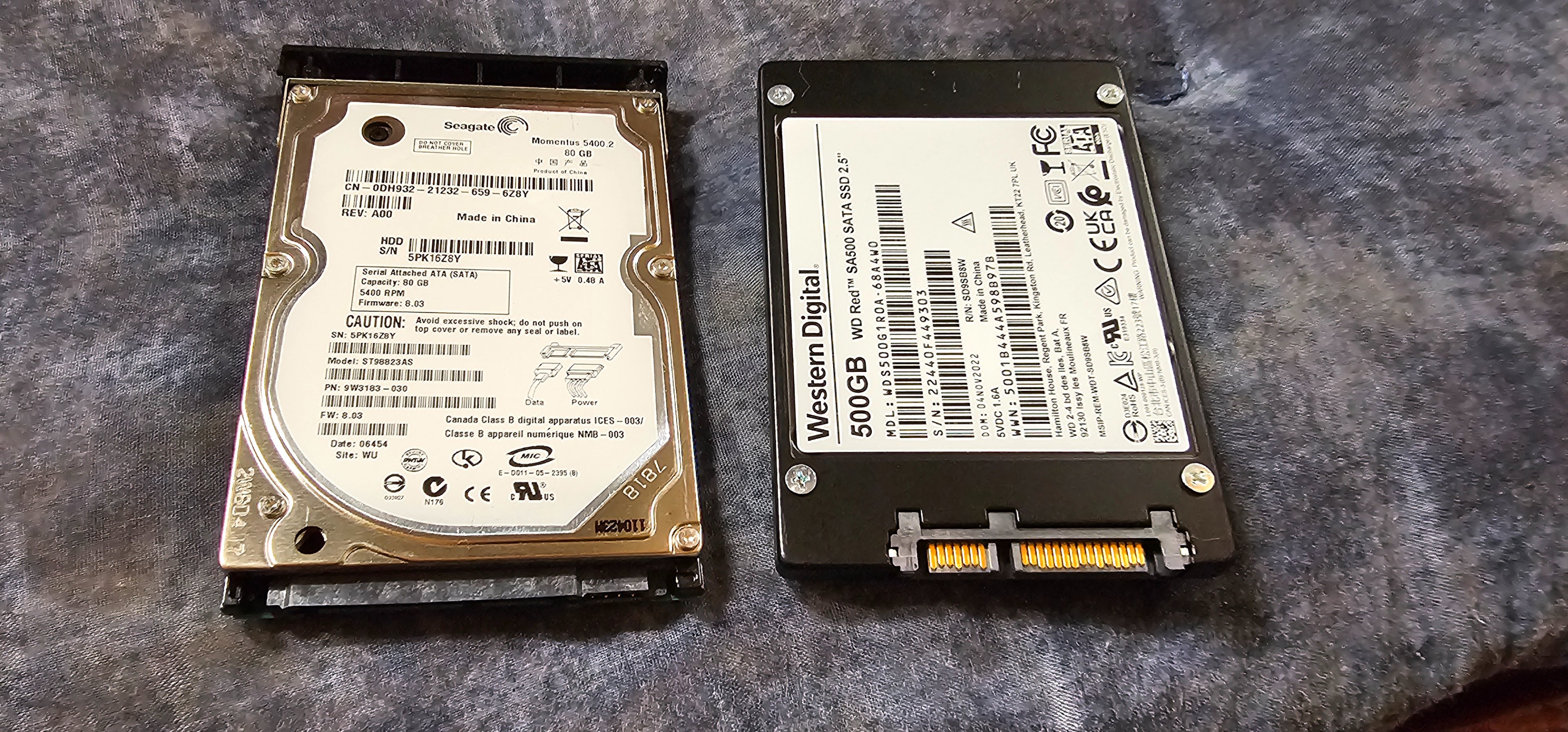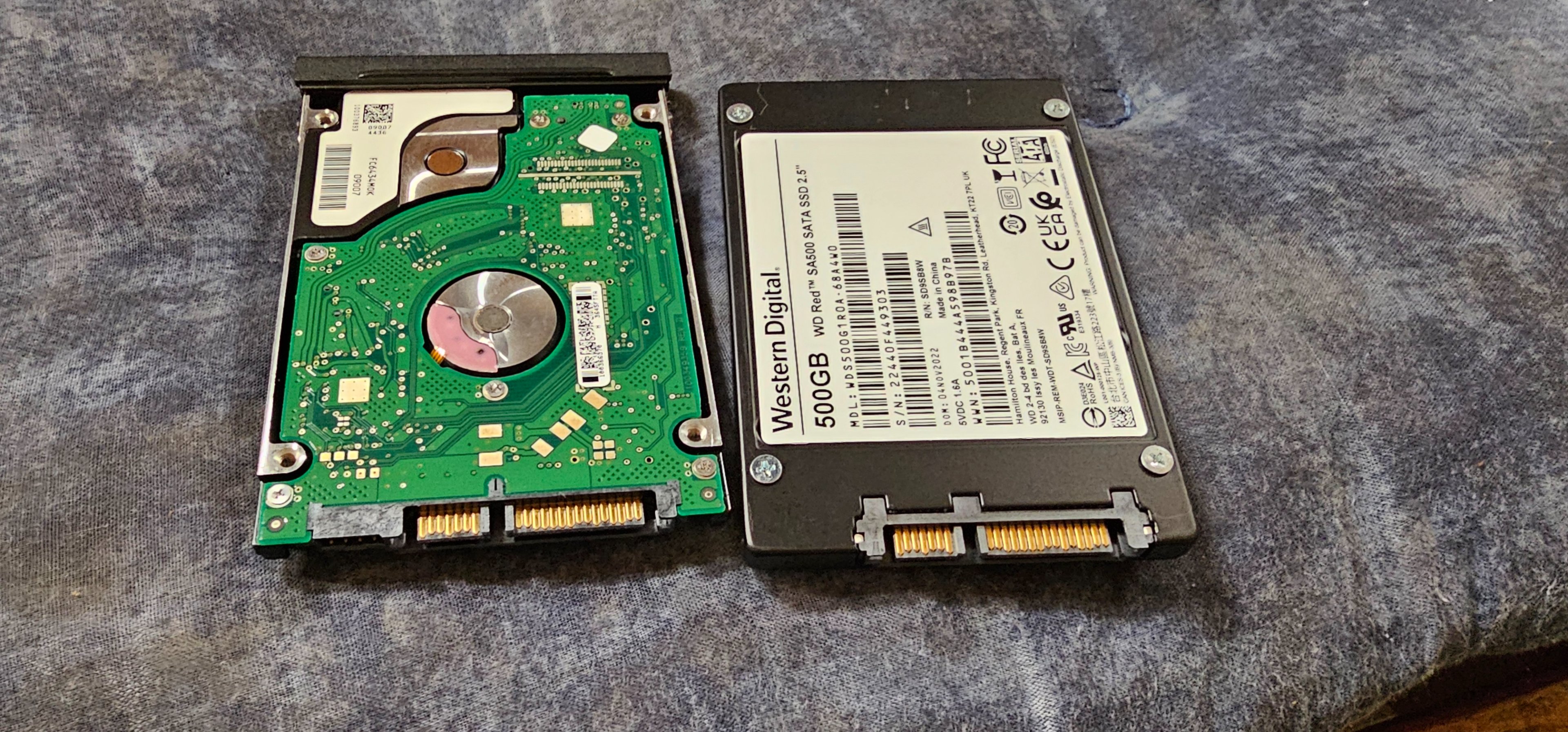 Ist die SSD evtl. nicht kompatibel? Anbei ein Bild der aktuell installierten HDD und der "neuen" SSD: