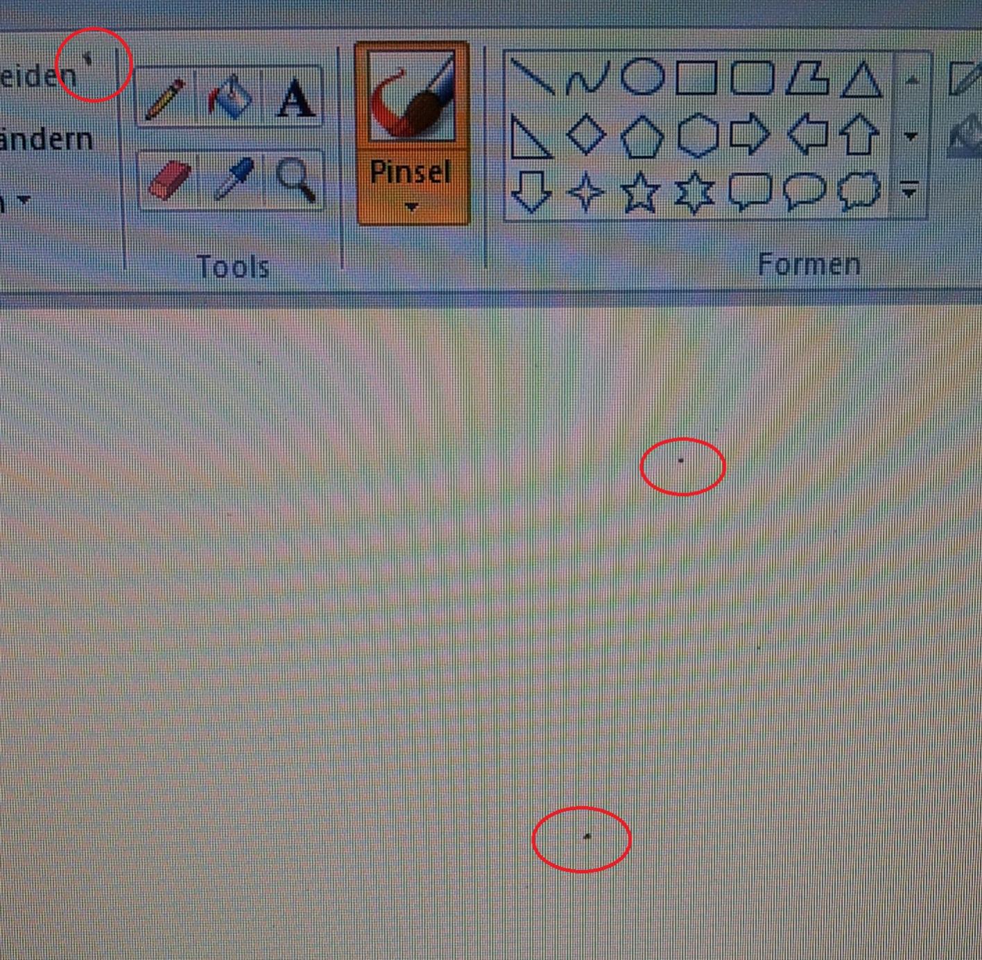 habe ein 15 Monate altes Inspirion und da habe ihc jetzt festgestellt, wenn der Bildschirm länger an ist auf dunklen bis schwarzen Flächen ein rosa/lila J zu sehen ist. Größe 10x10cm. Ist das ein Umtauschgrund? Das Notebook hat zudem noch 2 Bereiche indem Pixel sehr komisch ausgefallen sind. Ich hoffe man sieht das auf den Bildern. Das J versuche ich morgen nachzureichen