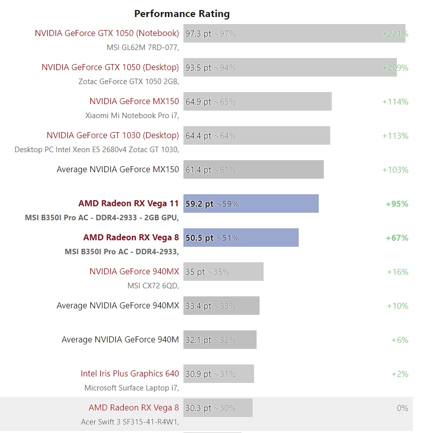 Noch dazu, dass eine MX150 in deinem Link in der Gaming Performance 103% vor einem 2500U liegt, 22% vor der Desktop Variante der Vega 8 im 2200G und sogar immer noch knapp vor Vega 11 im 2400G.