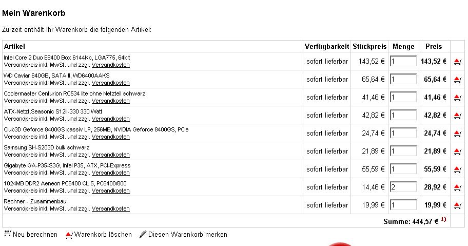 Alles von Hardwareversand für ca. 450€ + ca. 13€ Versand (NN) + 20€ Zusammenbau.