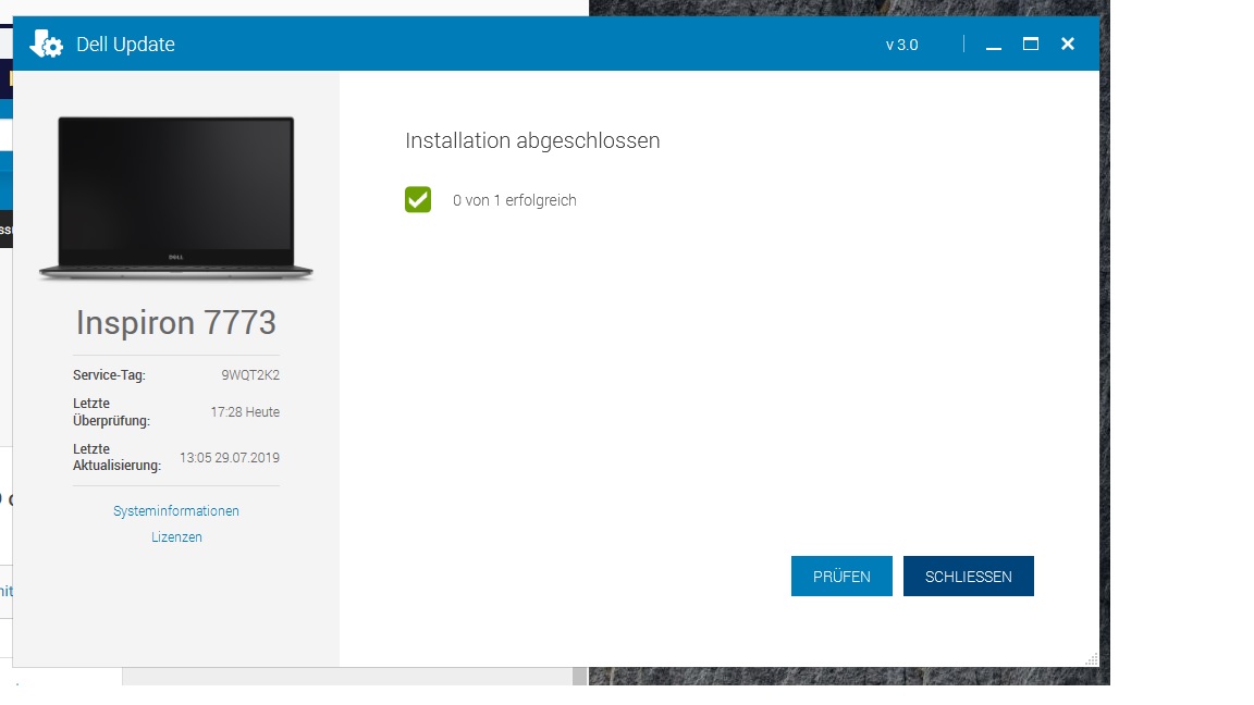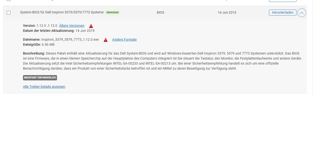 Mein eigentlich treues Notebook (bzw. das Programm Dell Update) fordert mich seit einiger Zeit immer wieder auf, eine "kritische Aktualisierung" herunterzuladen und zu installieren. Das erledige ich immer brav, und wenn ich den Rechner dann neu starte, geht das Gleich von vorne los.... Ich hänge mal Bilder jeweils von der Aufforderung und dem Endergebnis an, vielleicht hat ja jemand eine Idee?
