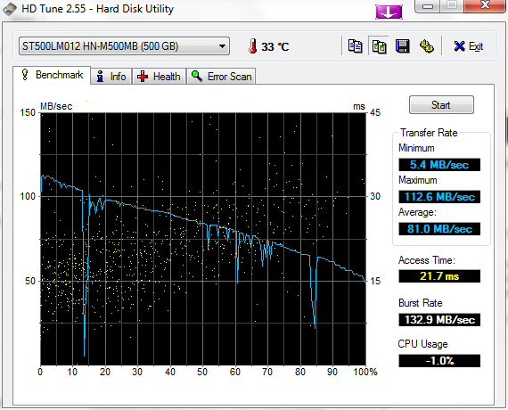 HD Tune: ST500LM012 HN-M500MB Benchmark