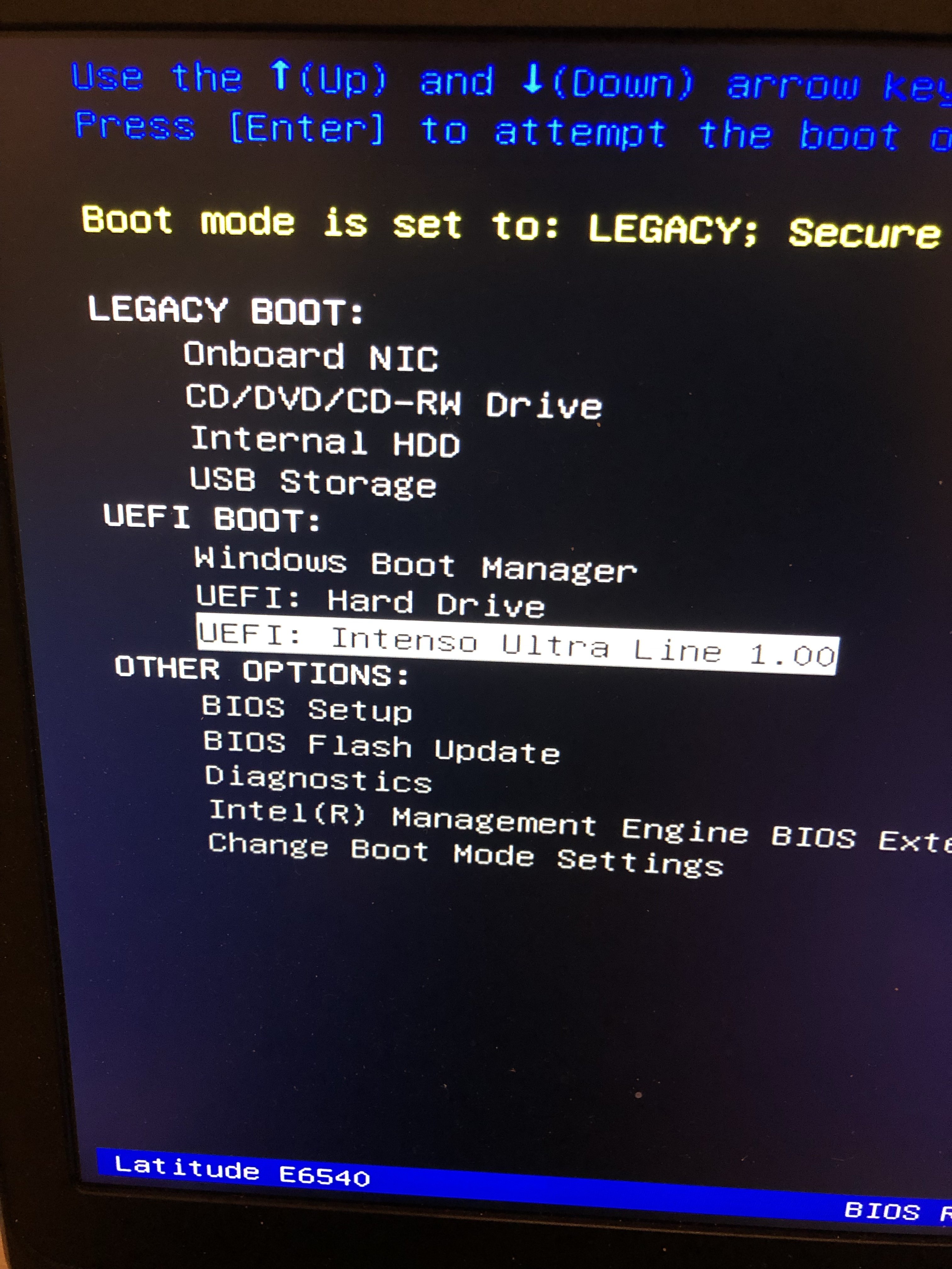 Egal was ich auswähle (F1, F2, F5) nachher bleibt es bei dem dunkele Bildschirm (siehe Foto) und so seit über 30-30min.