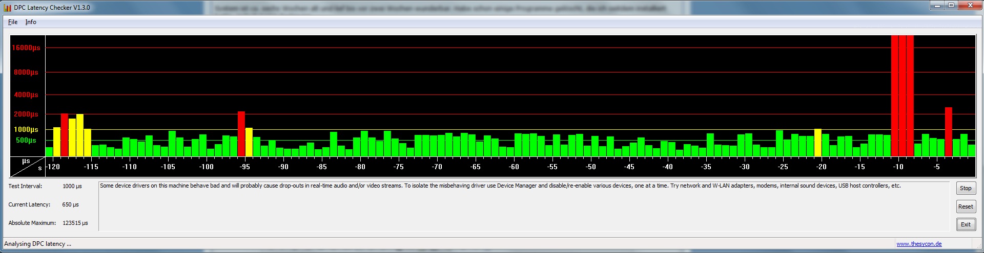Habe mir das Tool DPC Latency Checker geladen, um zu schauen wie es sich verhält.