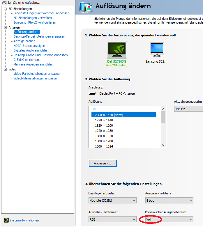 - NVIDIA Systemsteuerung - Dynamischer Ausgabebereich: Voll