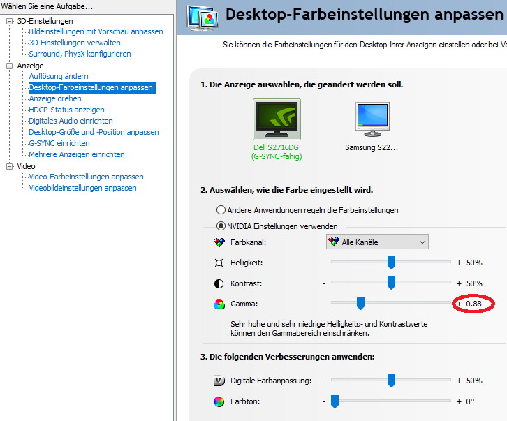 - NVIDIA Systemsteuerung - Gamma: 0,88
