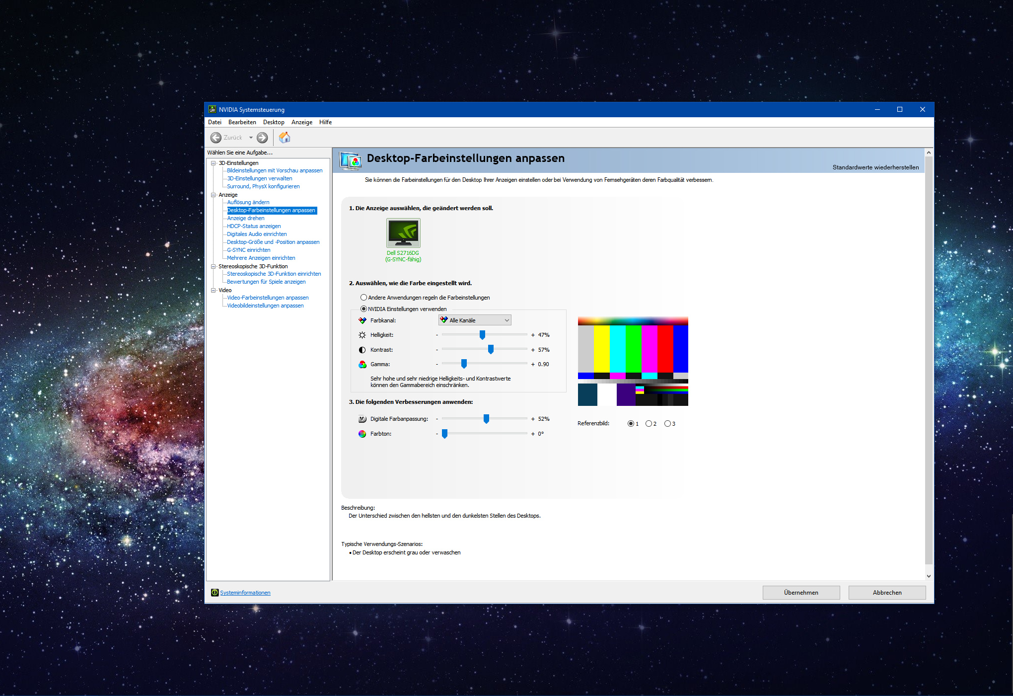 Sorry, mir ist aktuell nicht klar, warum heute noch manuelle Einstellungen für den Monitor vorgenommen werden müssen. Für perfekte Einstellungen mit einem Messgerät kann ich es mir nur noch vorstellen, sonnst nicht.