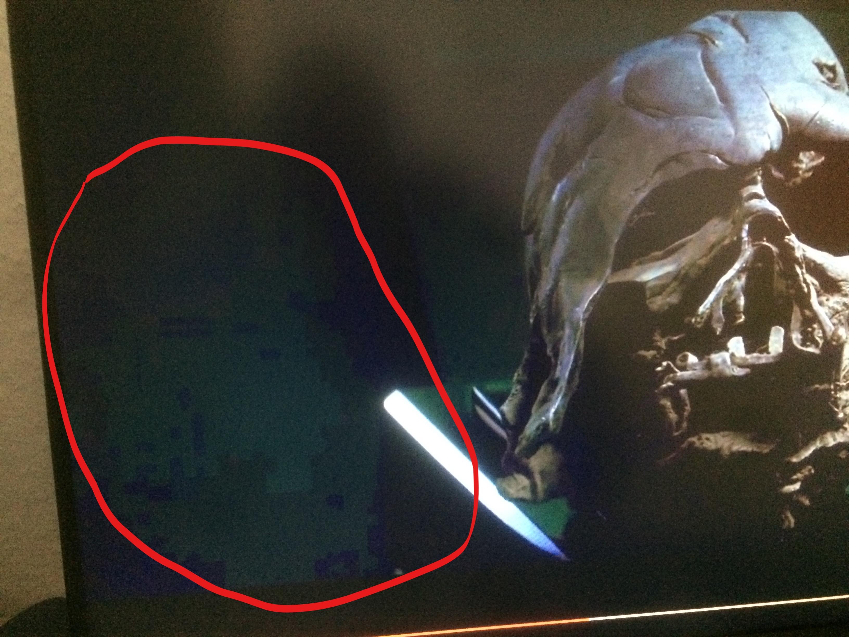Beim Spielen von Witcher 3 und auch beim Schauen des Star Wars Episode 7 Trailers sind mir jedoch unfassbar hässliche "Artefakte" aufgefallen (so wie man das vom windows media player von früher vlt. noch kennt). Ich habe mit meinem Iphone 5s mal ein Bild zur Verdeutlichung gemacht.