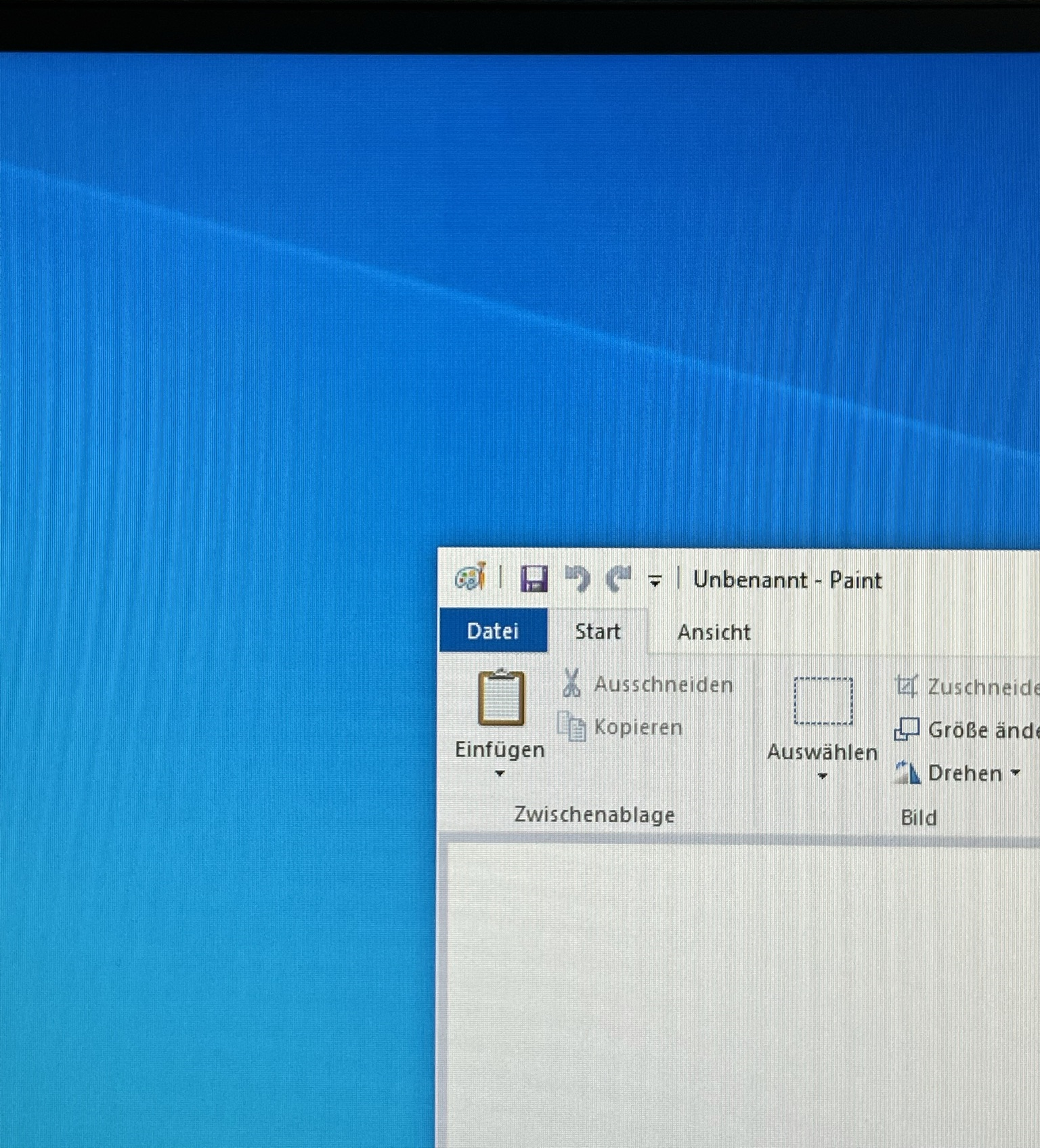 Auf hellblauem Hintergrund, in diesem Fall dem Standard-Hintergrund von Windows 10, weicht der Farbton oberhalb von Windows-Fenstern ab. Erkennbar ist das vorallem dadurch, dass sich von den Ecken aus vertikale Linien bis zum Bildschirmrand bilden. Das Ganze tritt nur im oberen Drittel des Bildschirms auf.
