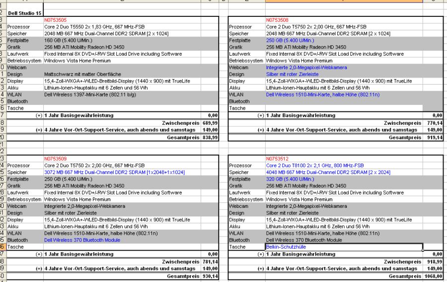 Ich habe mich ein wenig weiter umgeschaut und bin bei dem Dell Studio 15 (siehe Anhang) hängen geblieben. Aktuell finde ich sonst keine bessere Alternative.