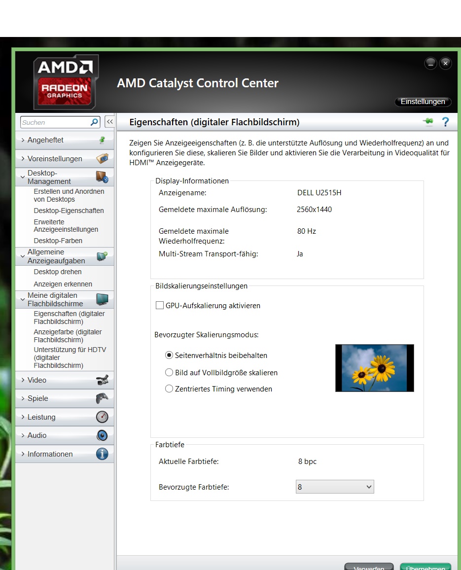 Habe seit einigen Tagen den Dell Ultrasharp U2515H hier bei mir am PC per Displayport an einer R9 270X angeschlossen.