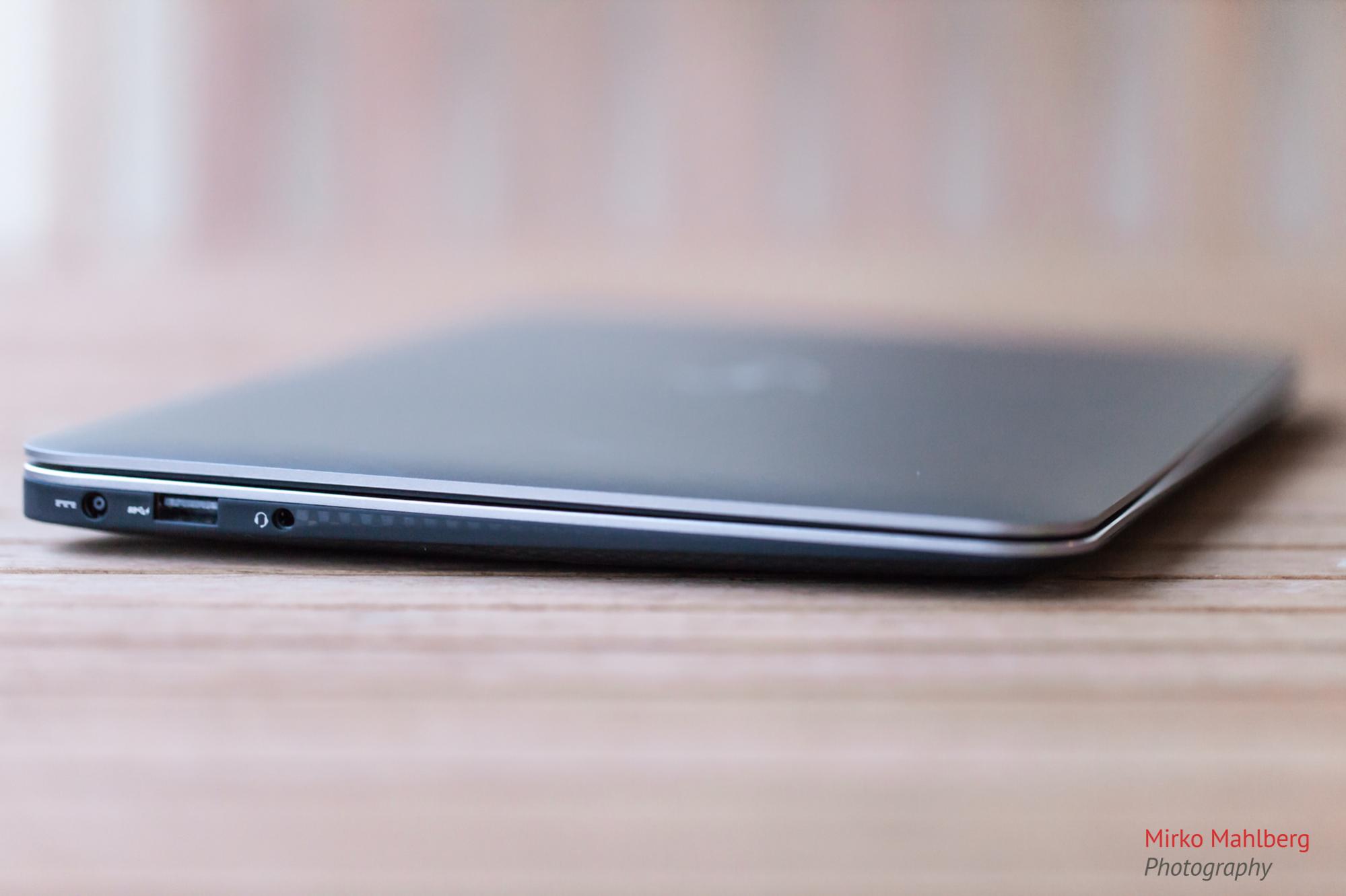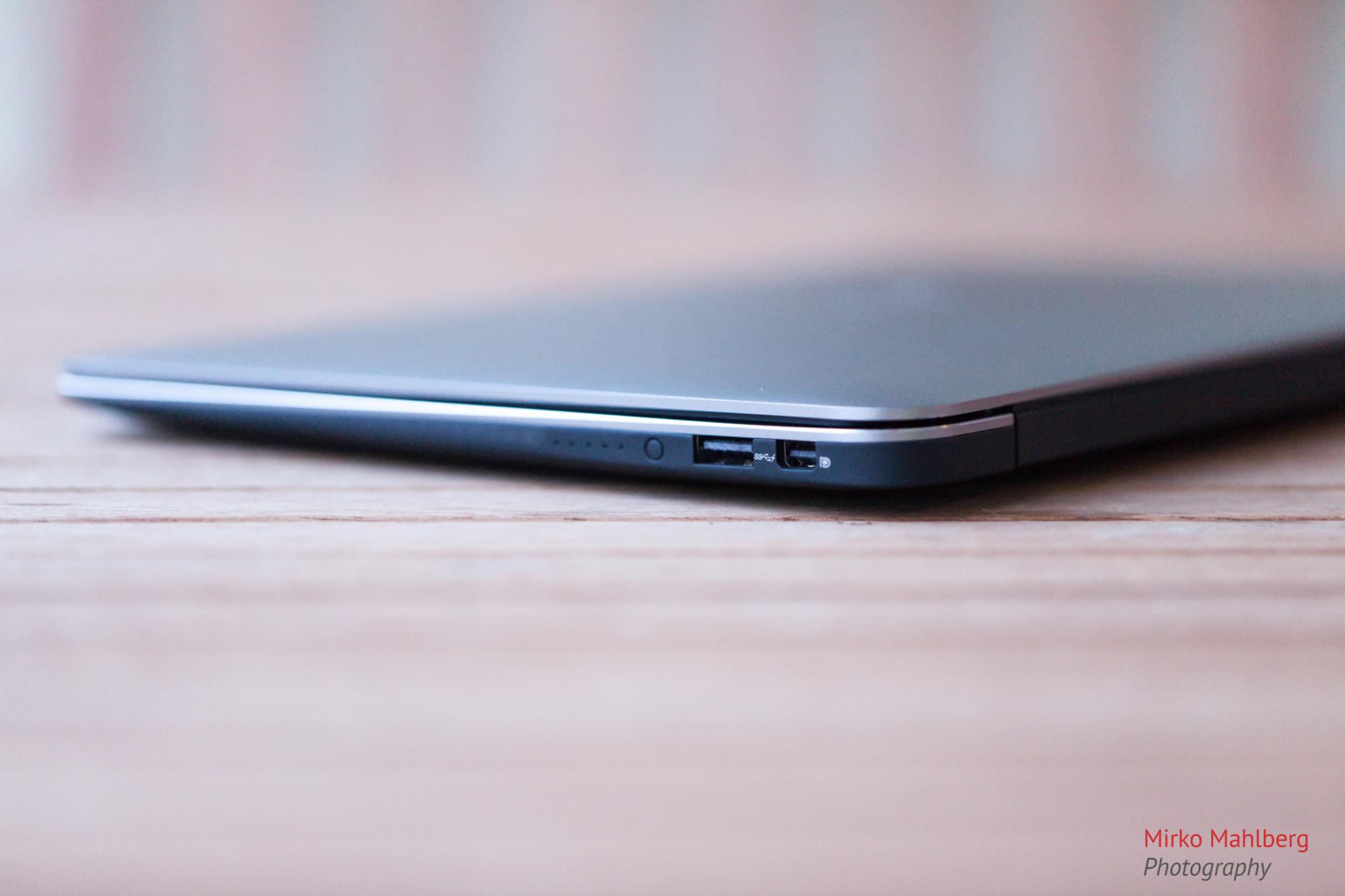Bei den Anschlüssen sieht es noch spartanischer aus. 2 mal USB 3.0, einen Mini-Display-Port und eine 3,5mm Klinkenbuchse. Über die 2 USB 3.0 Anschlüsse freue ich mich besonders, denn das Lenovo Yoga 2 Pro (was ich eigentlich schon bestellt hatte) hat nur einmal USB 2.0 und einmal USB 3.0. Ein SD-Kartenslot fehlt leider (ich brächte wenn überhaupt einen CF-Kartenslot