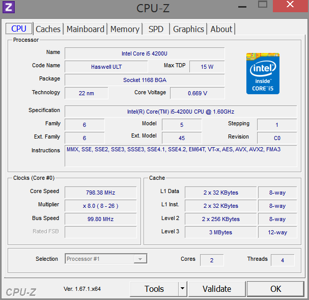 - Prozessor: Intel Core i5-4200U (1,6GHz - 2,3 GHz)