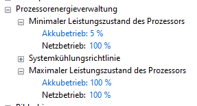 Auch unter Prozessorenergieverwaltung habe ich auf 100% hochgedreht: