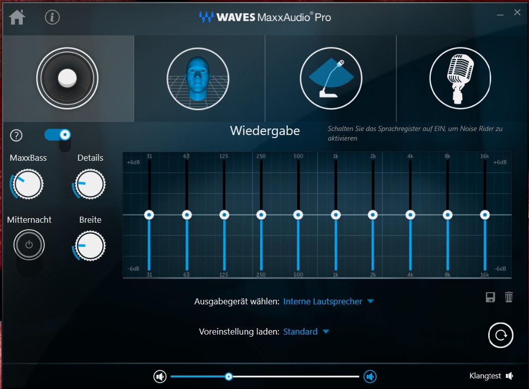 Mit dem 'Waves MaxxAudio Pro' Equalizer lässt sich der Sound sowie die Lautstärke auch subjektiv noch ein wenig verbessern.