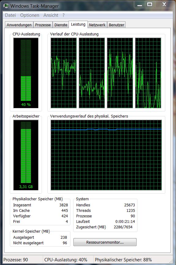 Also im Abgesicherten Modus sind es nur 20 Prozesse und die Auslastung ist niedrig, aber bei normalem Start hat sich nichts getan.
