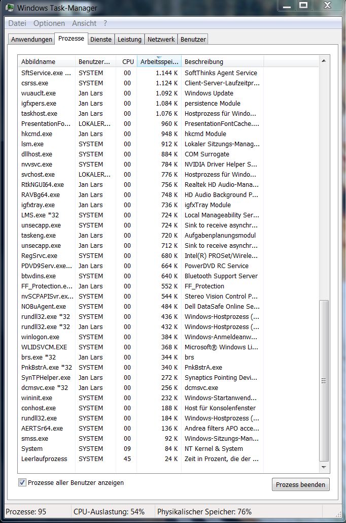 Also, bei meinem XPS 17 habe ich eigentlich fast die selben Prozesse und die verbrauchen auch ungefähr so viel Speicher. Ich hab zwar 6GB RAM aber auch 113 Prozesse. Du hast nur 95 und verbrauchst mehr. Starte mal dein XPS im Abgesicherten Modus und schau mal, ob er da auch so viel verbraucht.