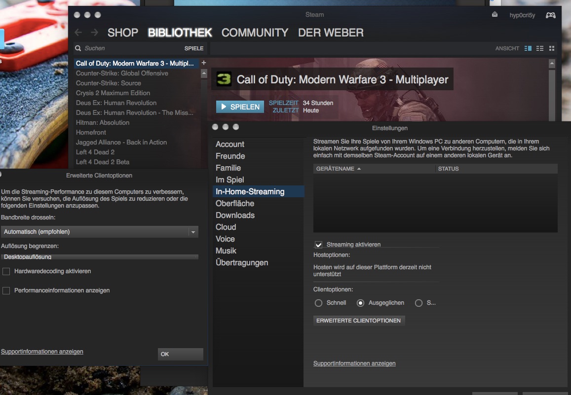Ich habe einen Rechner mit schnellem Prozessor und Grafikkarte, auf diesem PC sind meine Spiele und ich nutze ab und an das Steam Inhome-Streaming zum Zocken.