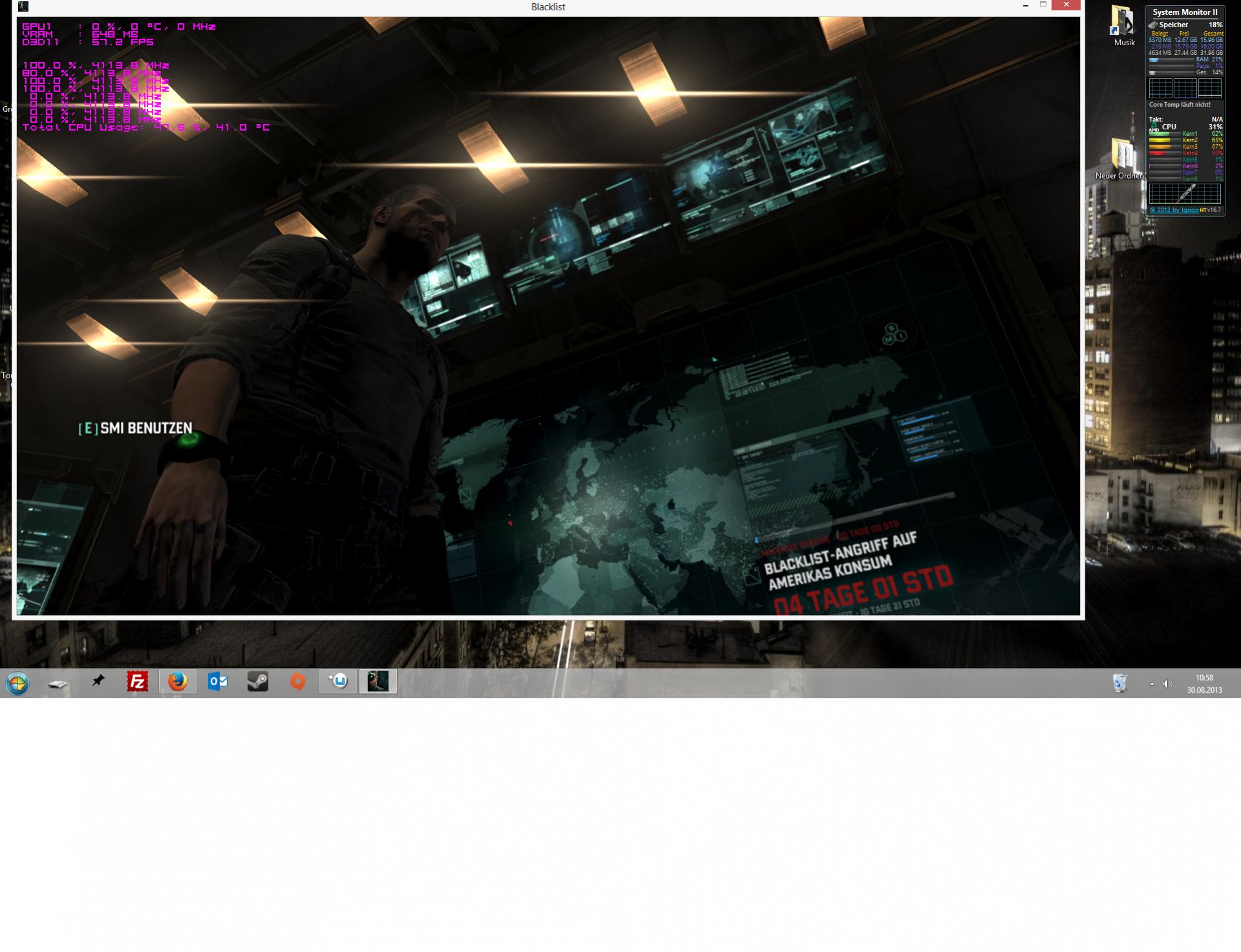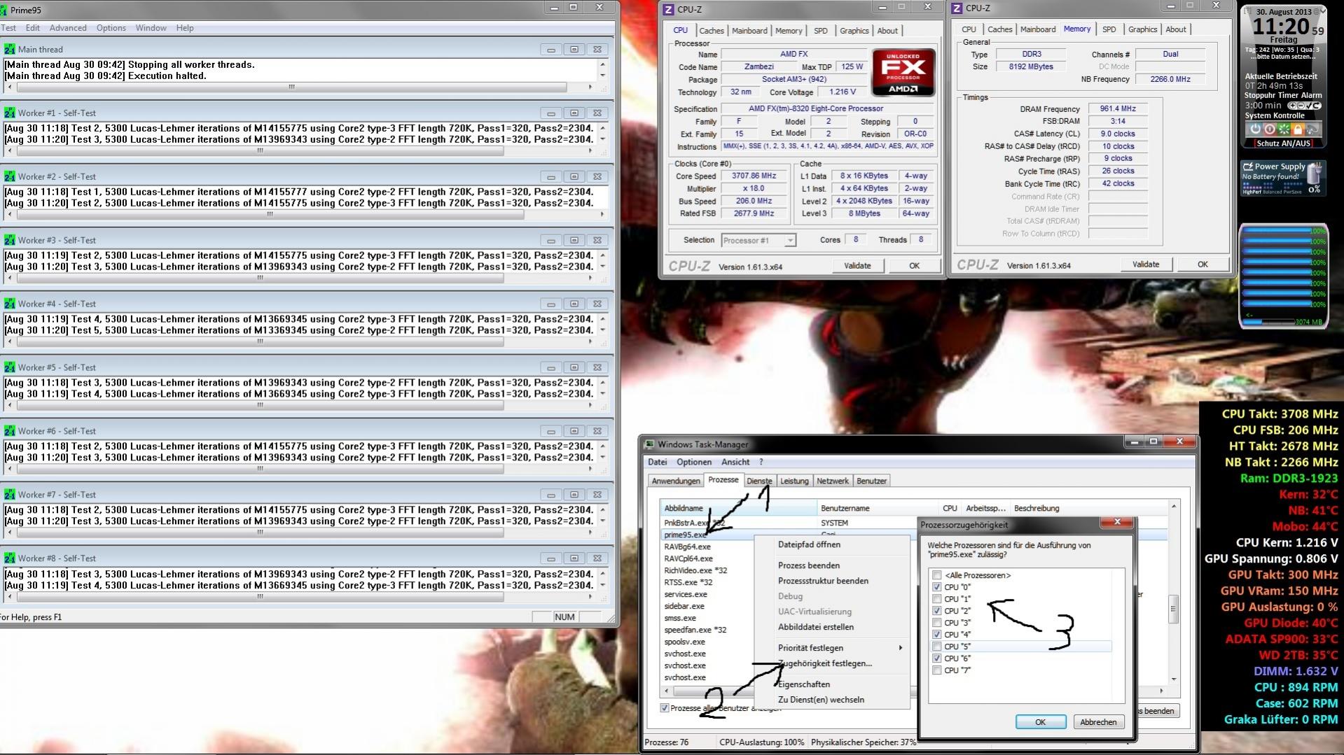 Sooo wie ich das auf deinem Foto sehe, hast du da schon "rumgespielt" jedenfall haben deine ersten 2 Module(4Threads) vollbelastung, und die anderen 2 Module(4 Treads werden nicht belaste)
