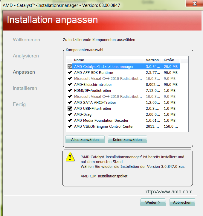 Als AMD Treiber habe ich mich diesmal für den CATALYST 11.10 entschieden, also nicht den aktuellen. (werde ich aber auch noch ausprobieren , eins nach dem anderen).
