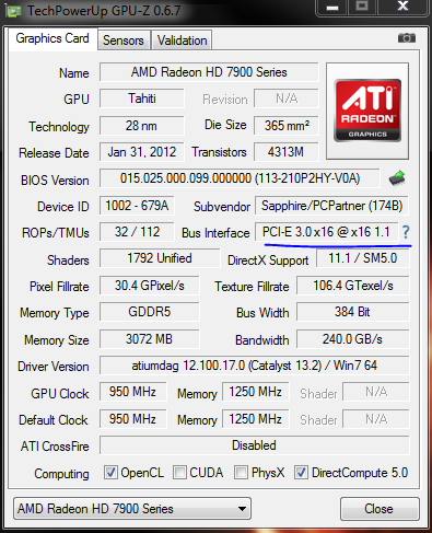 Allerdings wird bei GPU-Z nur PCI-E3.0 x16 @1.1 x16 angezeigt, sprich die Karte läuft im 1.1 Mode...