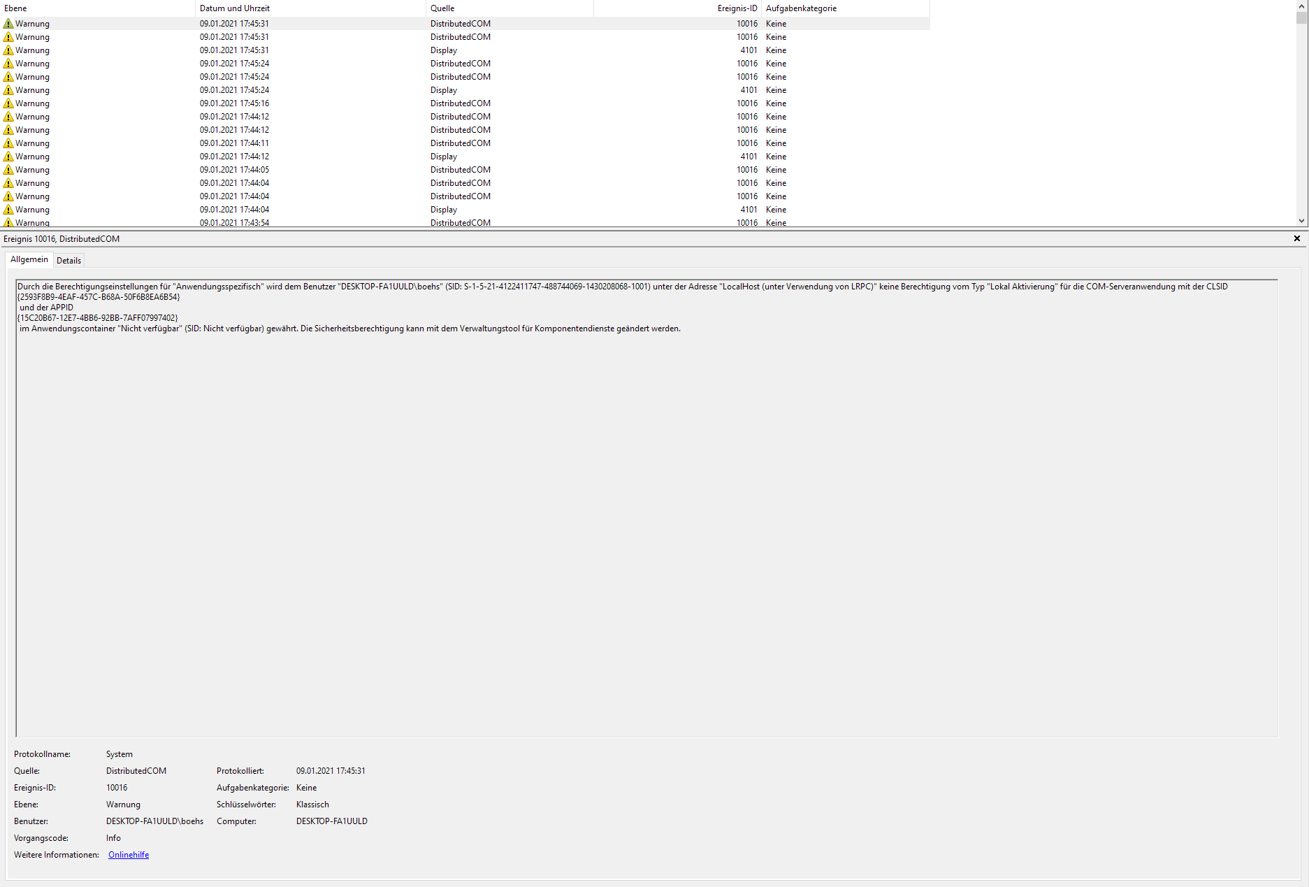 Jetzt scheint es sowieso zu laufen, nachdem ich die Stromversorgung auf Adaptiv gestellt hab.