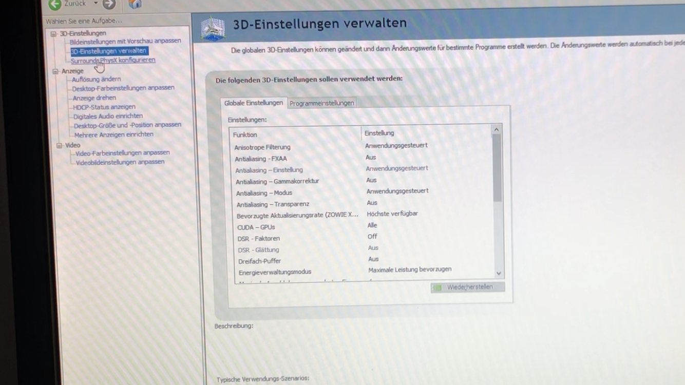 In der NVIDIA Systemsteuerung (siehe Bilder)