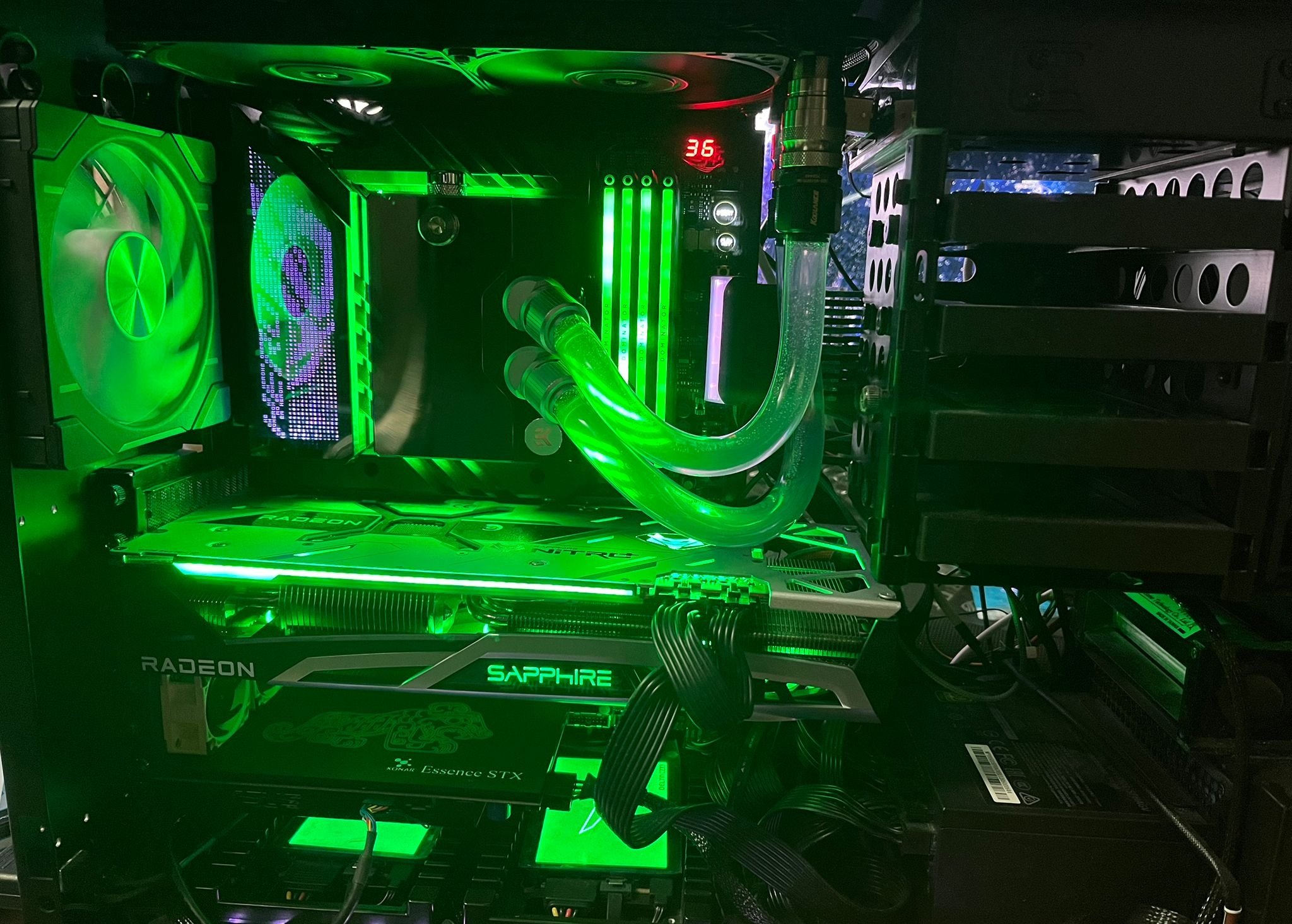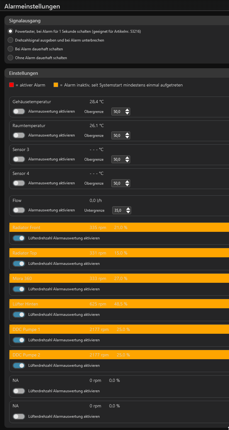 Übrigens hat der Octo auch eine Alarmfunktion für die angeschlossene Lüfter. Da meine zwei RGB Strips im Mesh oben und vorne dort mit angeschlossen sind, blinkt nun die Mesh Front und Top rot, wenn einer der Lüfter ausfällt. Funktioniert auch mit meinen zwei DDC Pumpen, die jetzt auch mit am Octo angeschlossen sind.