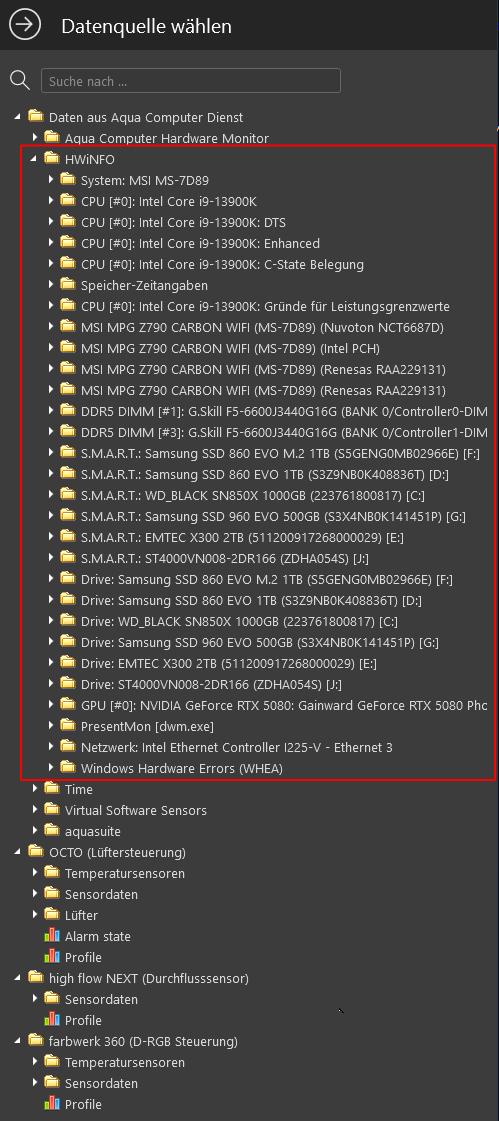 In der Aquasuite lässt sich dann ersehen, was genau hier ein Problem darstellt. Das ist bei mir sogar der Fall, weil Aquacomputer hier versäumt hat, eine gewisse Zeit nach dem Rechnerstart als Default zu setzen. Habe Lüfter oder vielleicht sind es auch die Pumpen, die mit dem Einschalten etwas verzögern und dann blinkt mein Gehäuse 2-3 mal rot.