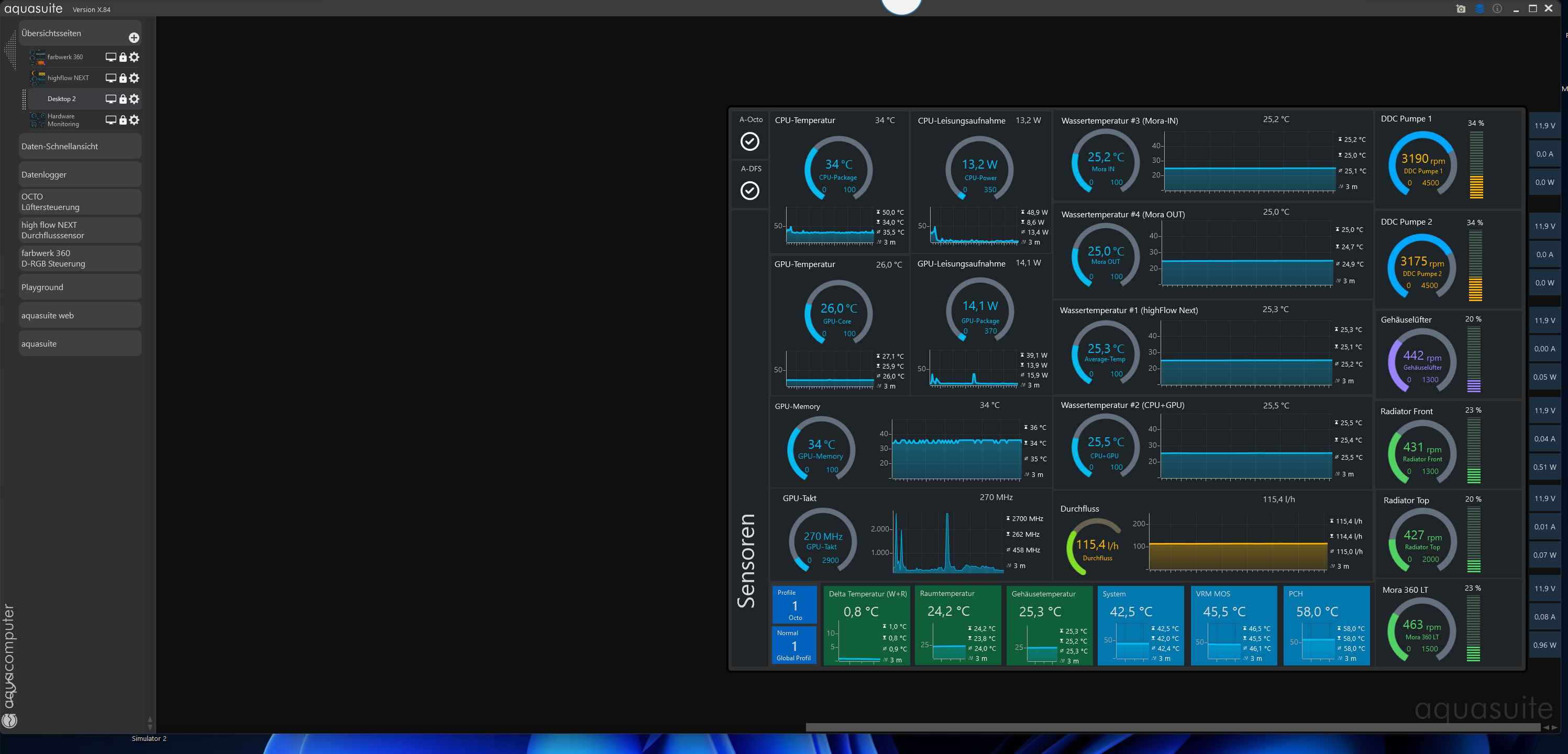 Mit der Aquasuite werden mit meiner RTX 5080 auch die Temperaturen nicht korrekt eingebunden, daher geht mir hier auch gegen den Strich HWInfo mit im Hintergrund zum Einbinden laufen zu lassen. Mit meiner neuen Regelung muss ich HWInfo nicht mitlaufen lassen. Das war mit meiner vorherige RTX 3080 Grafikkarte nicht der Fall, damit wurden die Temperaturen korrekt mit eingebunden.